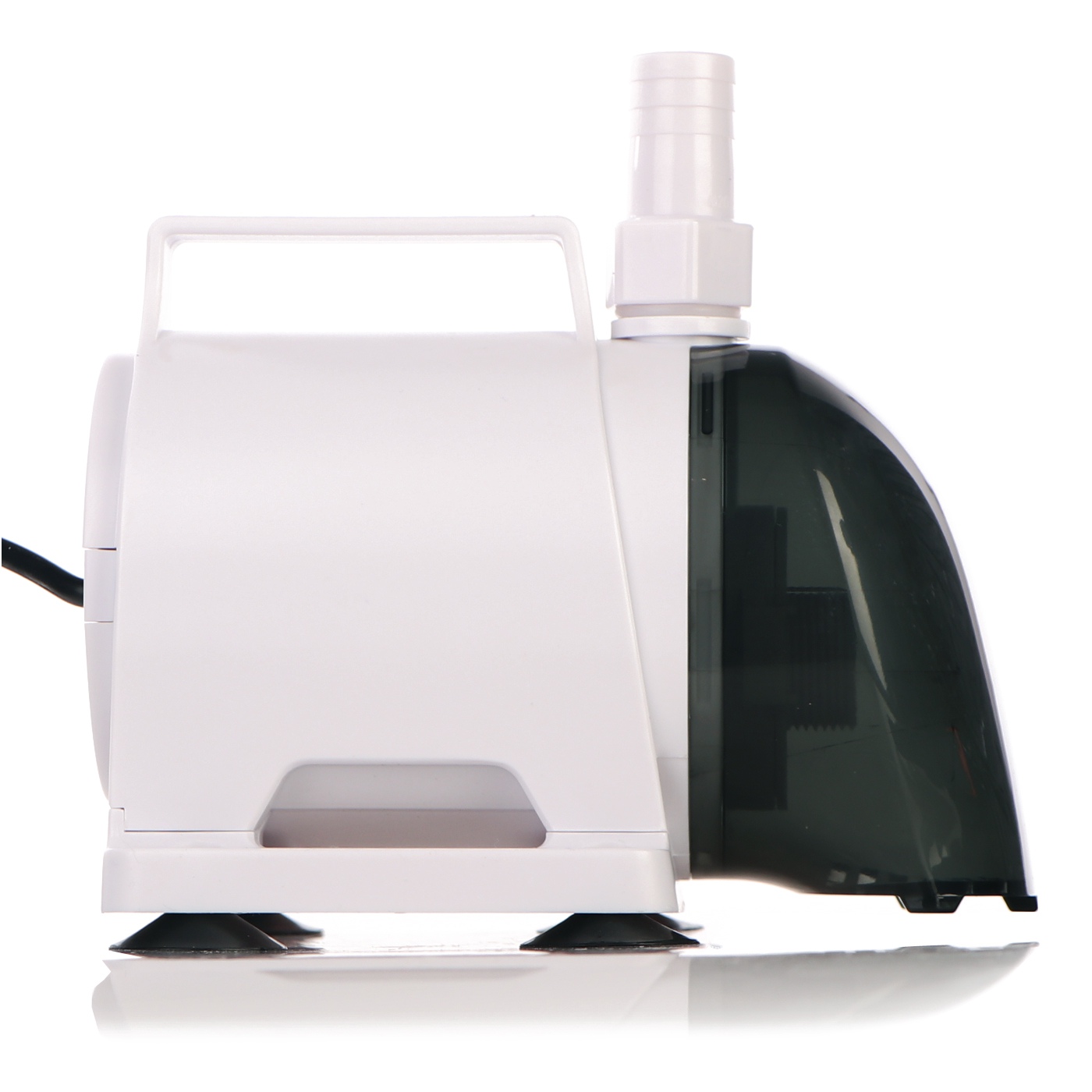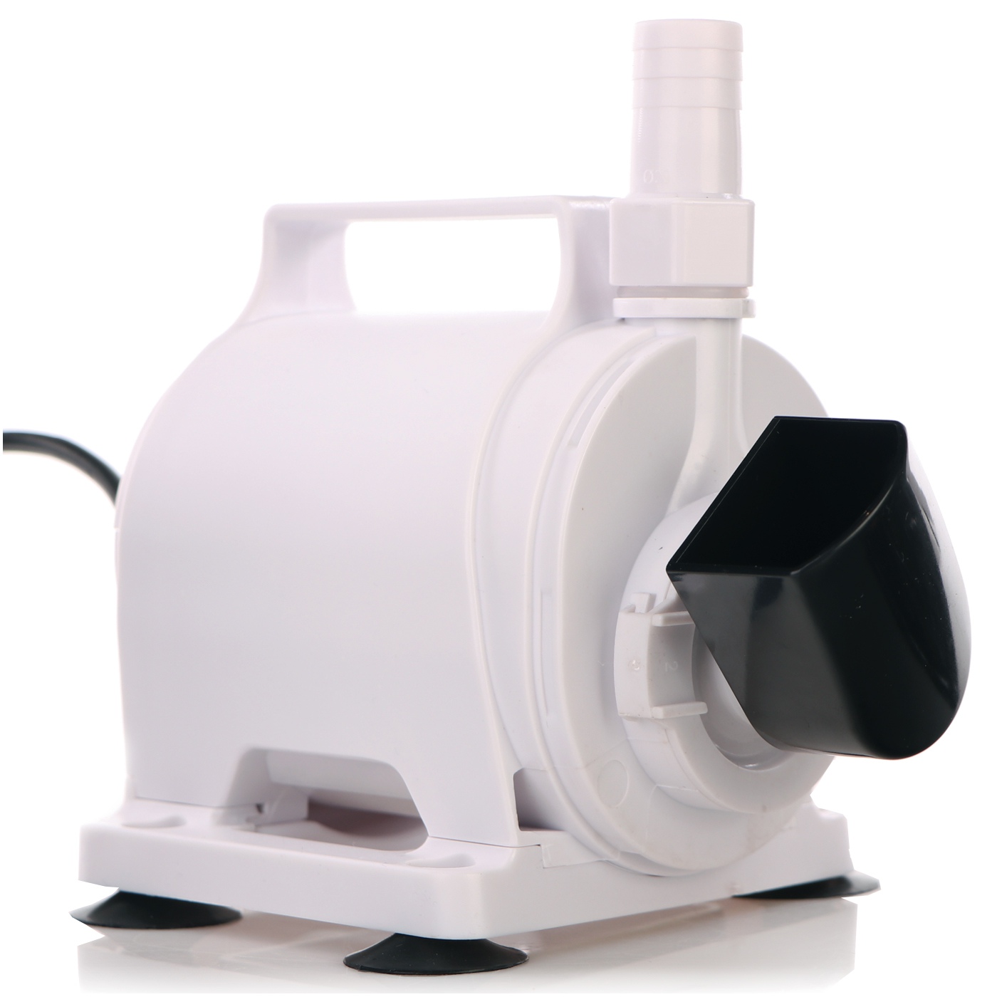 Mniejszy z nosów może pobierać wodę z dowolnego kierunku 360st. Znacznie to ułatwia ustawienie pompy w niewielkich zbiornikach jak np: sump.