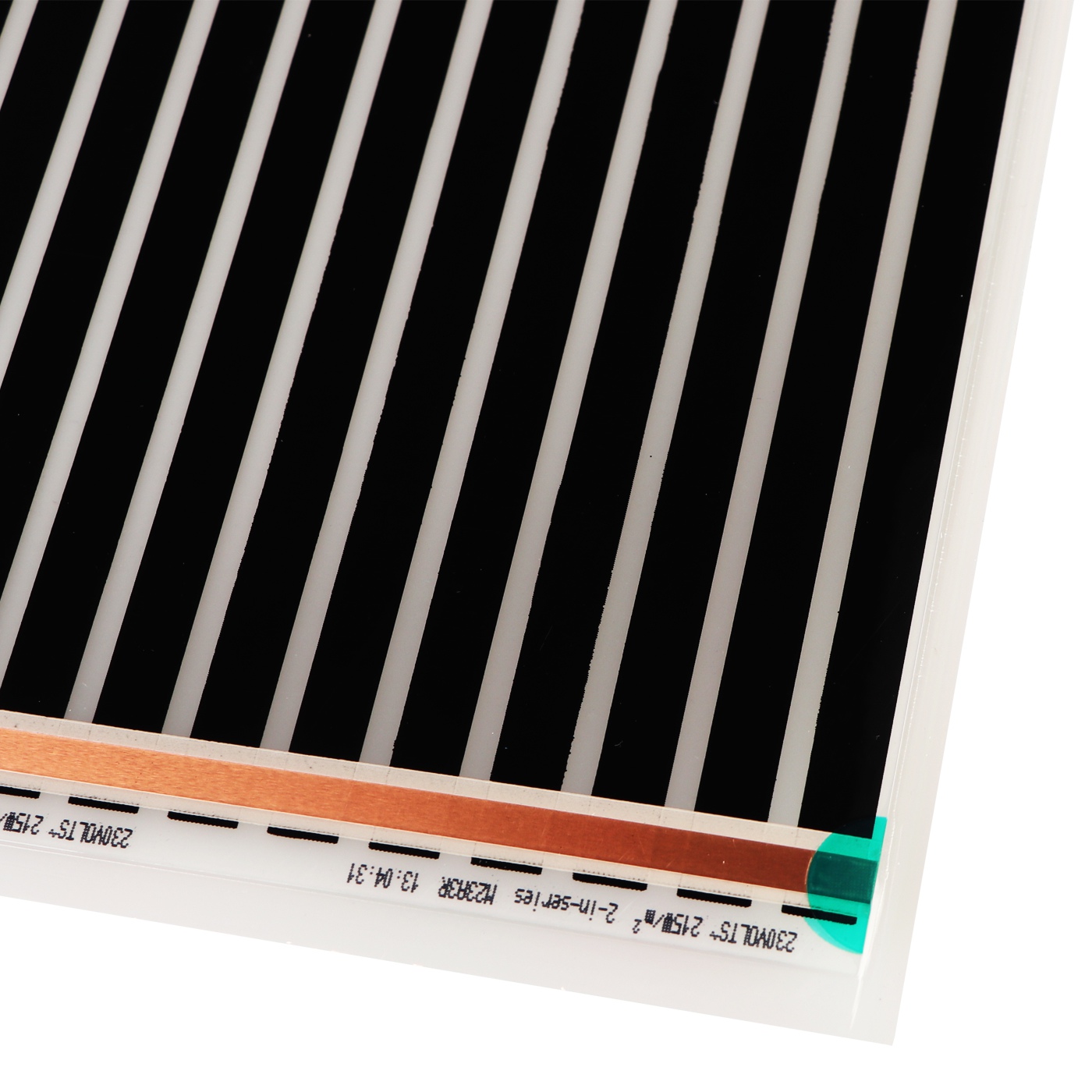Podzielenie powierzchni grzewczych w zebrę, niby takie proste rozwiązanie, a pociąga za sobą wiele korzyści. Przede wszystkim, całkowita powierzchnia została zwiększona o ponad 35%, a jednocześnie pobór mocy nie zwiększył się. Cienkie paski szybciej rozgrzewają się niż duża powierzchnia grzejna, dlatego mata świetnie sprawdza się przy korzystaniu z termostatu. Poszczególny pasek potrafi wygenerować więcej ciepła, niż duża powierzchnia. Dlatego, mata Advanced jest ze wszech miar lepsza niż zwykłe maty o dużej powierzchni paneli grzewczych.