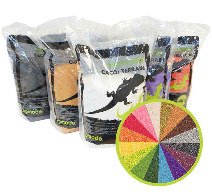 Jest to najlepsze podłoże dla zwierząt pustynnych. Odzwierciedla ich naturalne środowisko, umożliwia kopanie, składanie jaj, redukuje stres i wzmacnia naturalne zachowanie się zwierząt. Jednocześnie jadalny piasek komodo nie stanowi żadnego zagrożenia w przypadku połknięcia. Dodatkowo, CaCo3 uniemożliwia rozwijanie się roztoczy i bakterii w podłożu, tworząc w pełni bezpieczne i higieniczne środowisko.