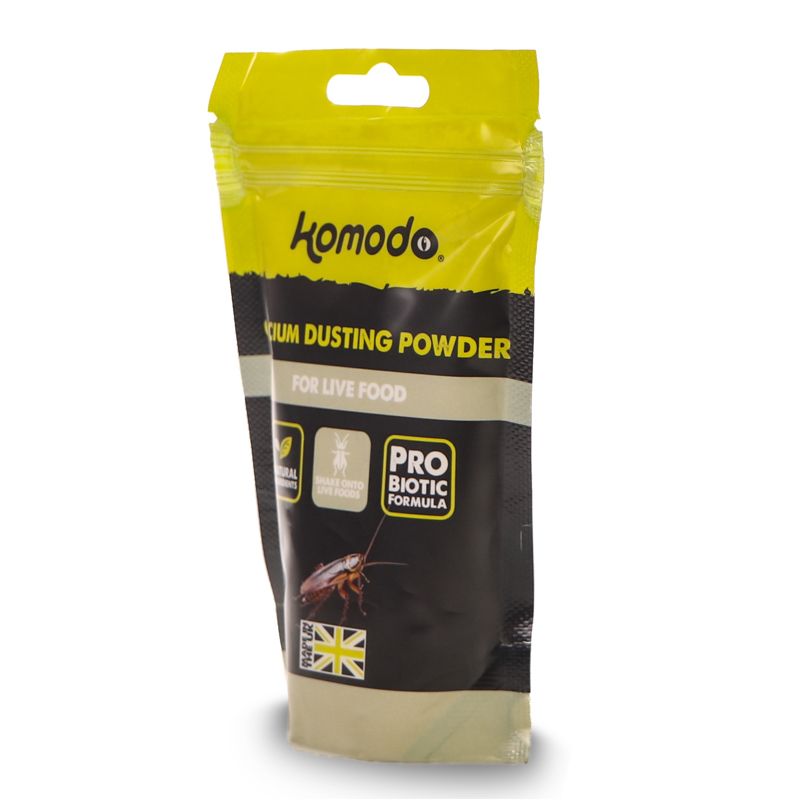 Komodo Calcium Dusting Powder można stosować bezpośrednio na żywych pokarmach, takich jak świerszcze, szarańcza lub mączniki, a także świeże produkty spożywcze, takie jak owoce i warzywa.