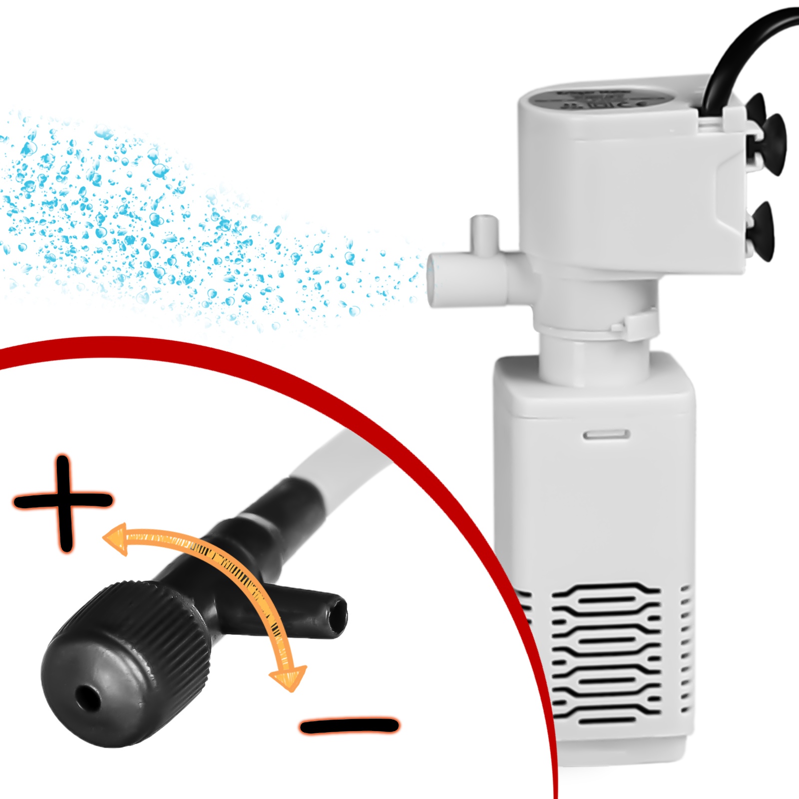 Jego miniaturowe rozmiary pozwolą Ci schować filtr w niewidocznym miejscu. Do tego z łatwością wykorzystasz go w niewielkich akwariach. Filtr, pomimo swoich niedużych rozmiarów doskonale filtruje i napowietrza.