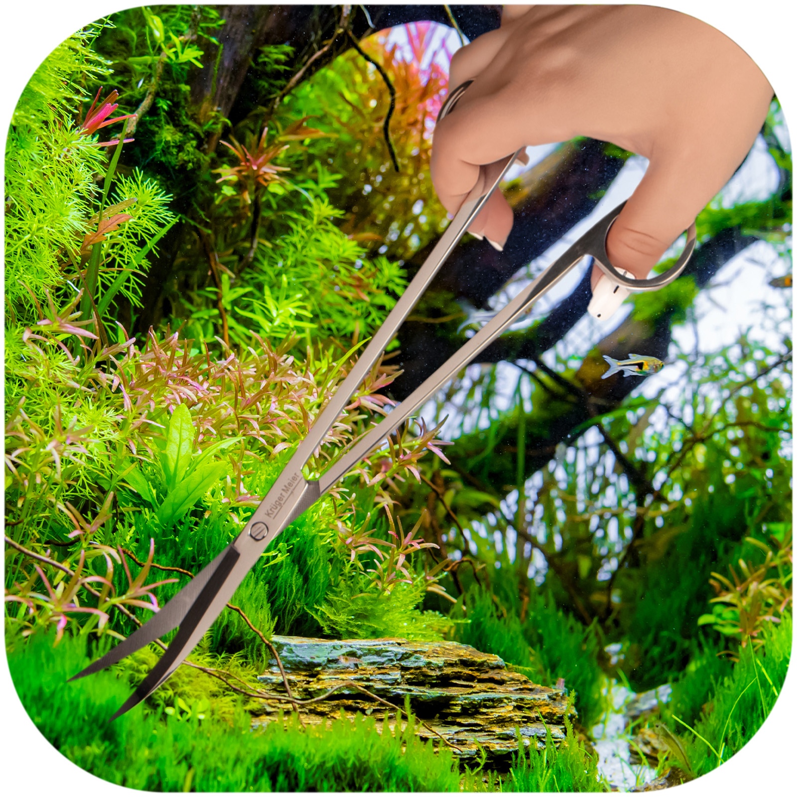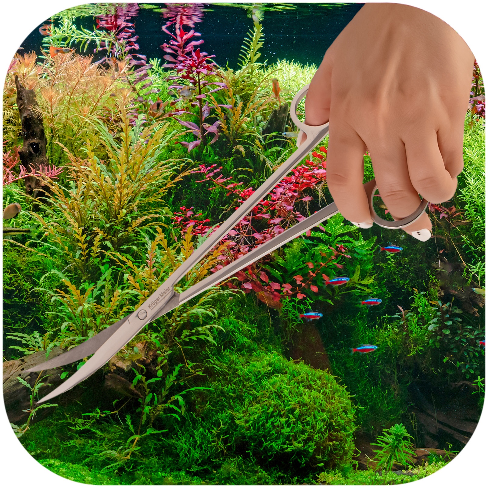 Te nożyce to coś więcej niż tylko narzędzie – to jednocześnie mistrz przycinania i artysta kompozycji podwodnej estetyki. Wykonane z wysokiej jakości stali, której nawet rdza się boi. Ich ergonomiczne uchwyty zapewniają komfort i precyzję, których nigdy wcześniej nie doświadczyłeś. Dzięki nożycom akwariowym Kruger Meier, nie będziesz miał problemu z najbardziej upartymi i niewygodnymi roślinami, a w krótkim czasie Twoje akwarium będzie dopracowane jak fryzura prezentera z telewizji.