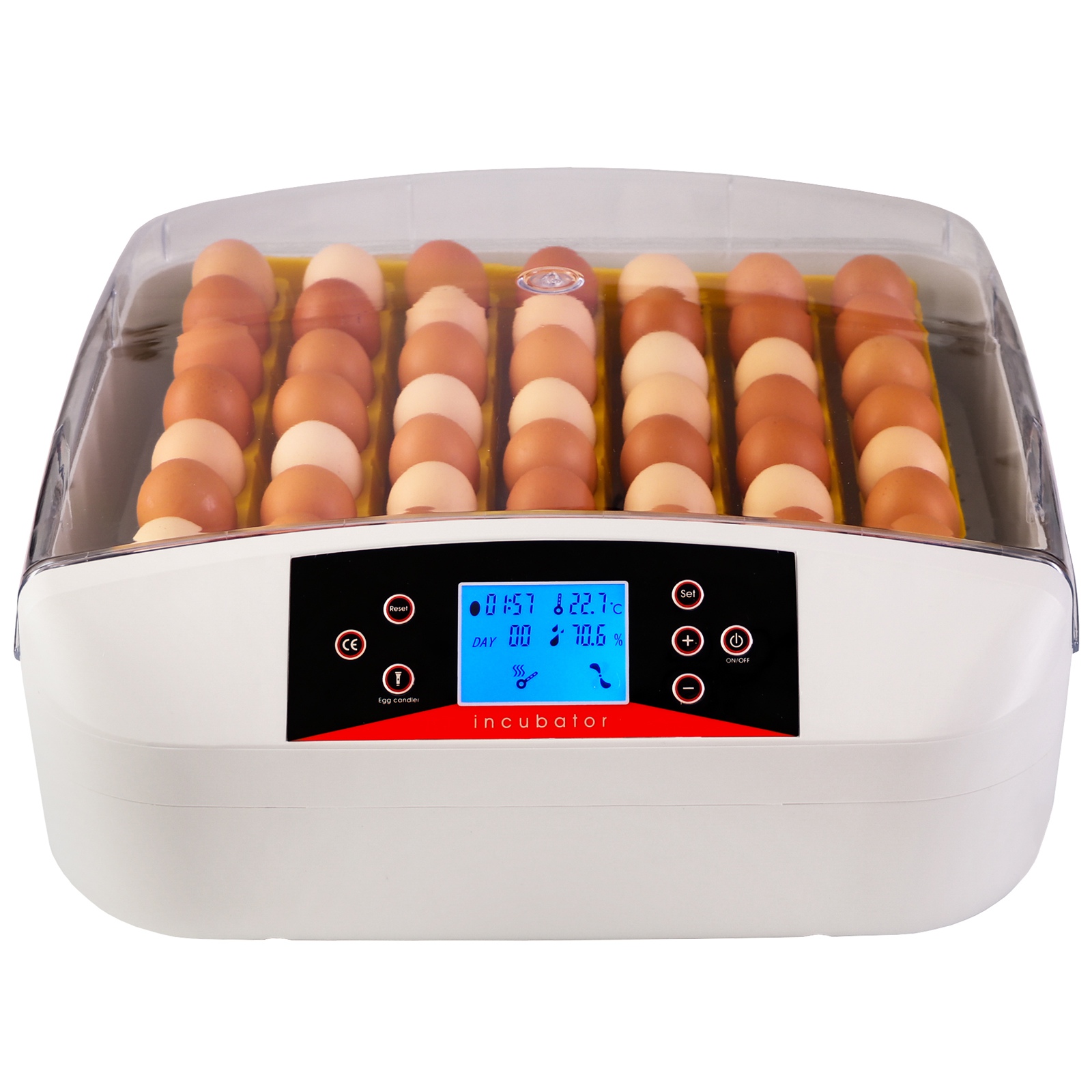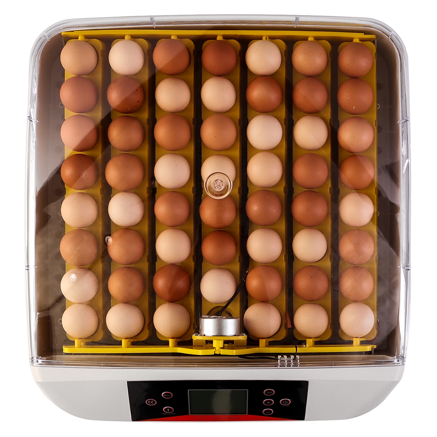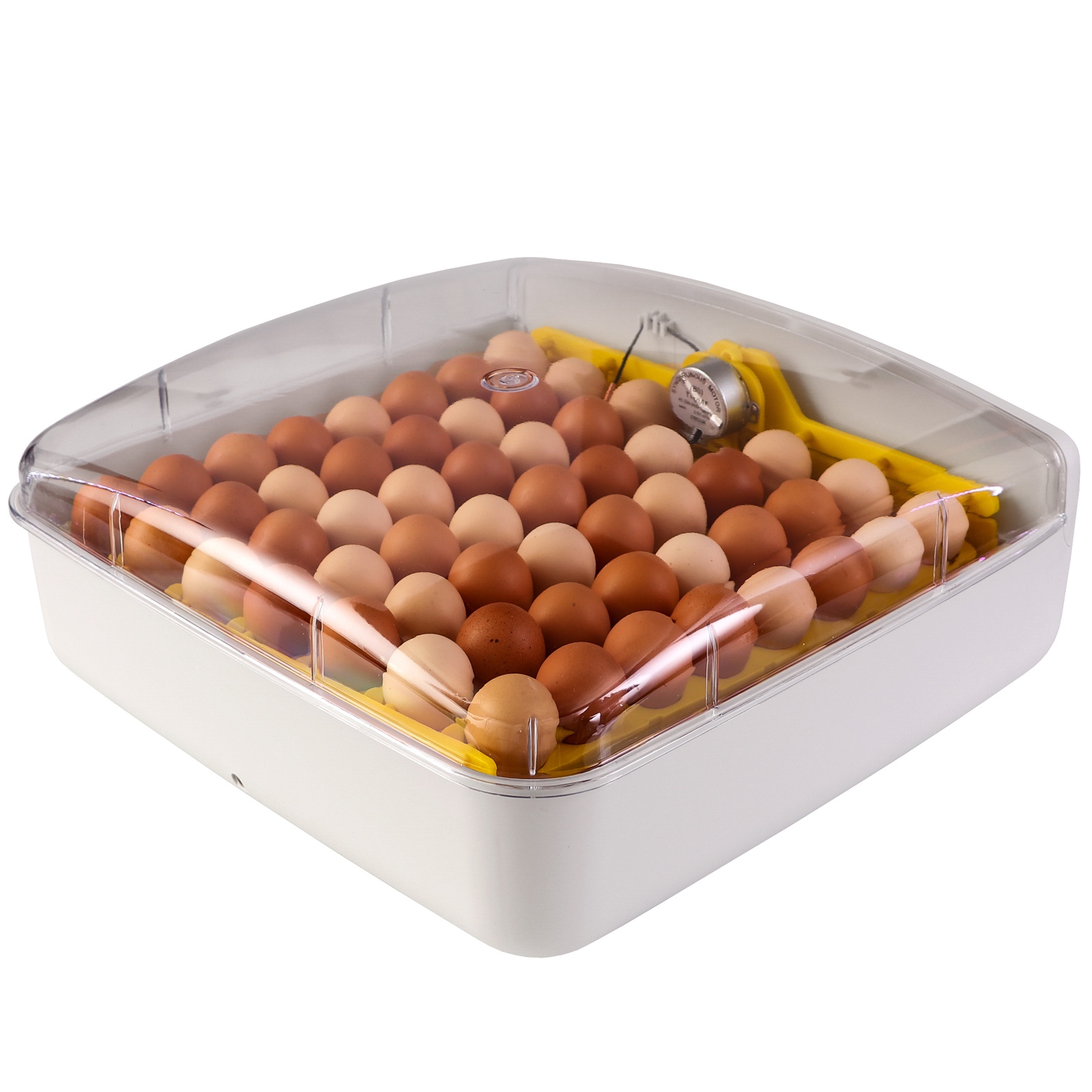 Wylęgarnia posiada wbudowany silniczek, który będzie poruszał kratką wewnątrz pojemnika. Jajka są pochylane w lewo i w prawo pod kątem 45st. automatycznie co dwie godziny. Dodatkowo, na wyświetlaczu znajduje się stoper, który odlicza czas do nastepnego obrotu jaj.