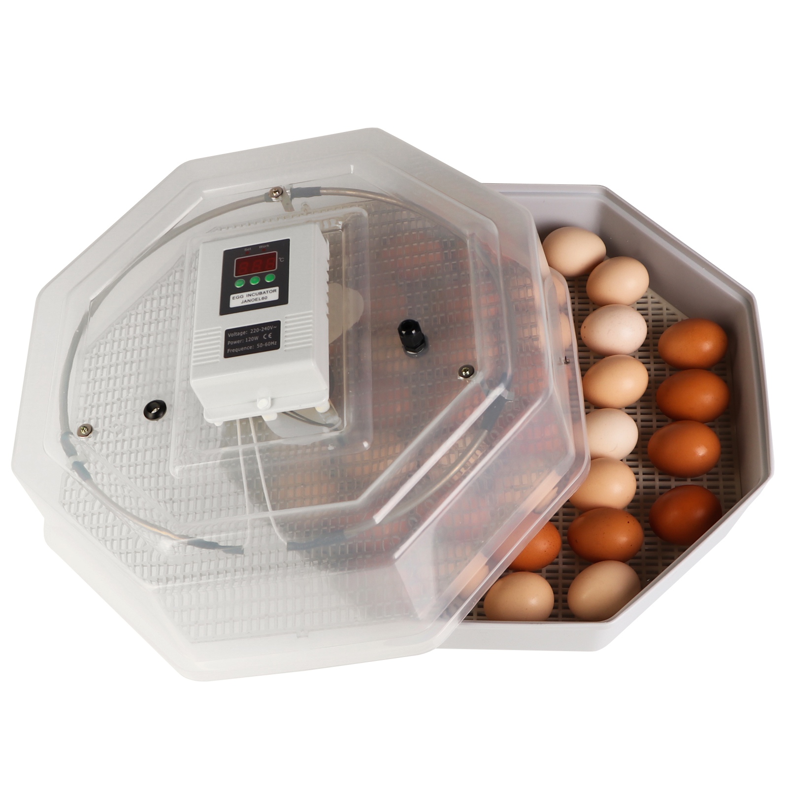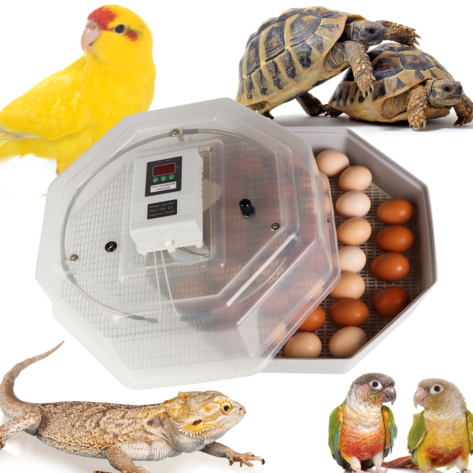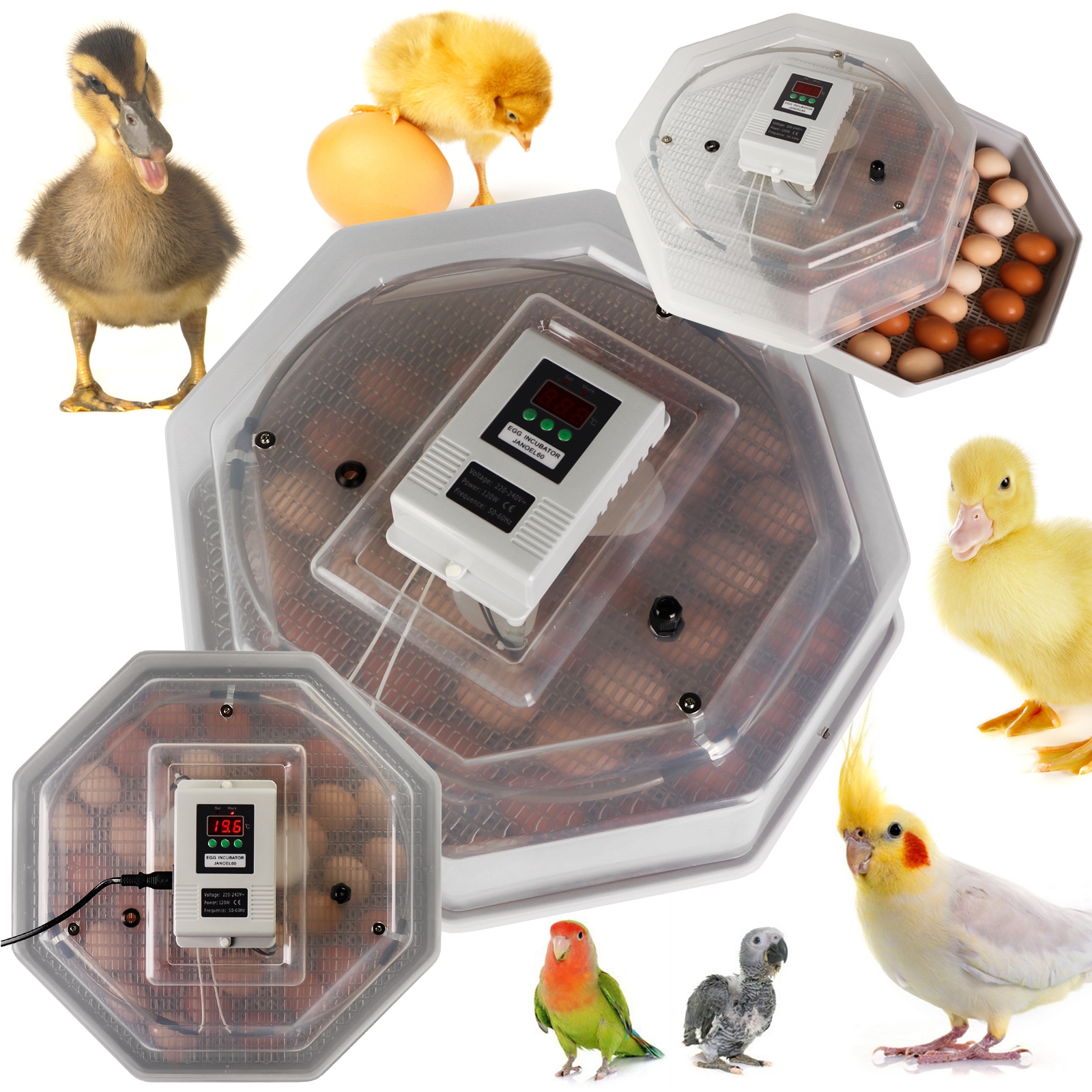 Sprzęt spełnia wszystkie wymagania jakich mogą oczekiwać użytkownicy i co najważniejsze wylęgające się ptaki. Jajka łatwo umieścisz wewnątrz, a dzięki transparentnej obudowie zawsze możesz podejrzeć proces inkubacji. Szybko zaprogramujesz odpowiednią temperaturę, a wbudowany termostat będzie ją samoczynnie utrzymywać.
