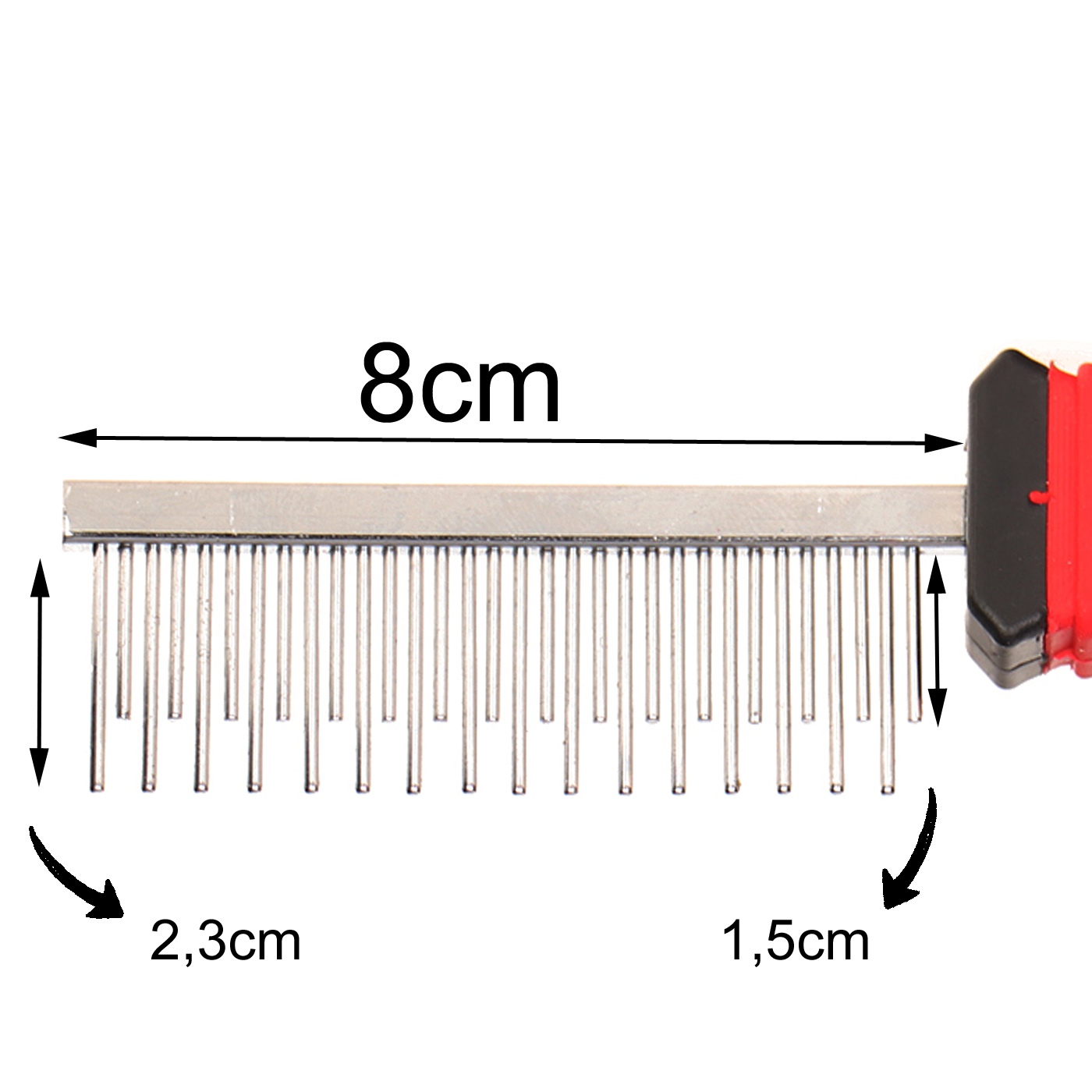 Różna długość rozstawu zębów pomaga spełnić wszelkie potrzeby pielęgnacyjne dla różnych typów sierści. Dodatkowo, zapewnia skuteczne wyczesywanie podszerstka i rozczesywanie włosa jednocześnie.