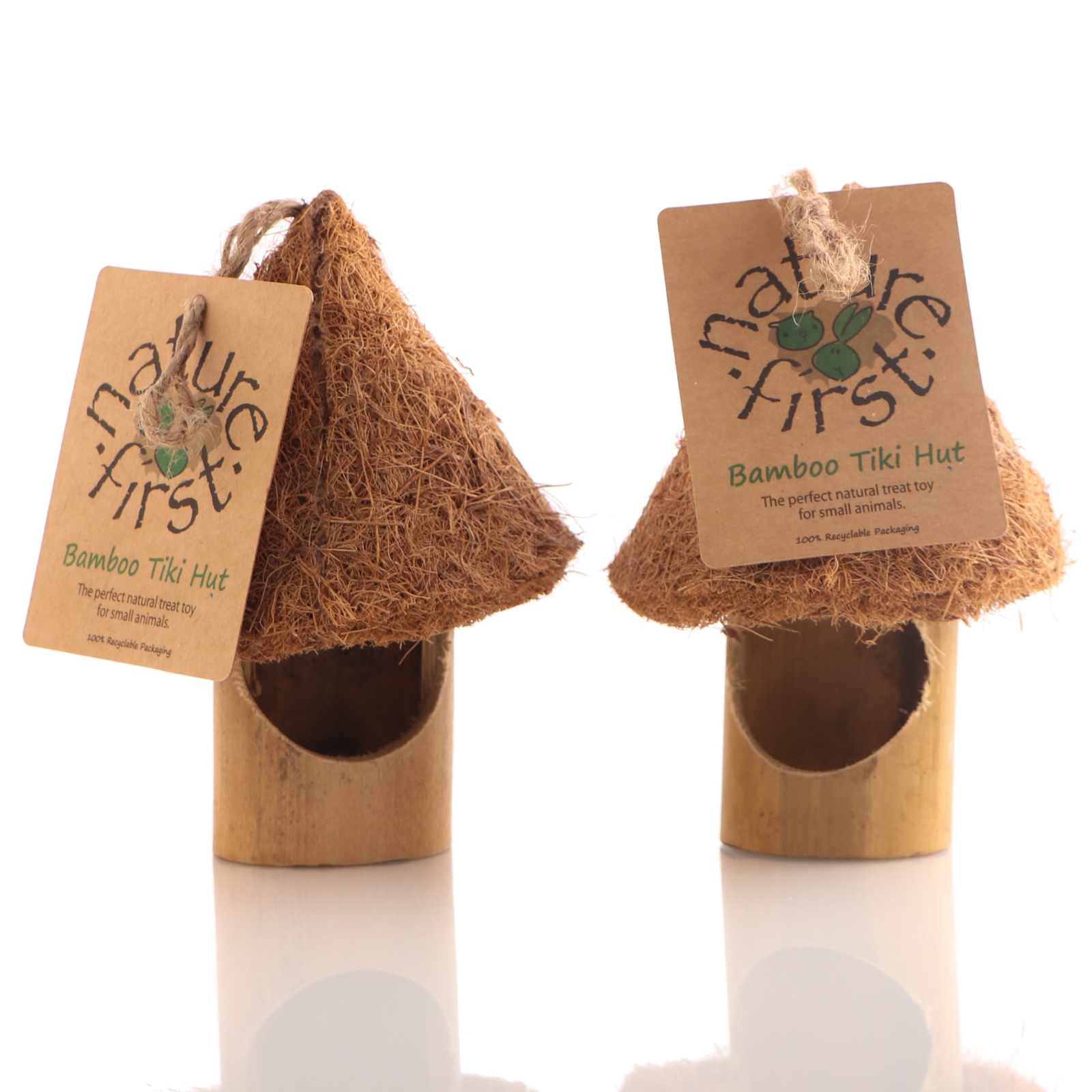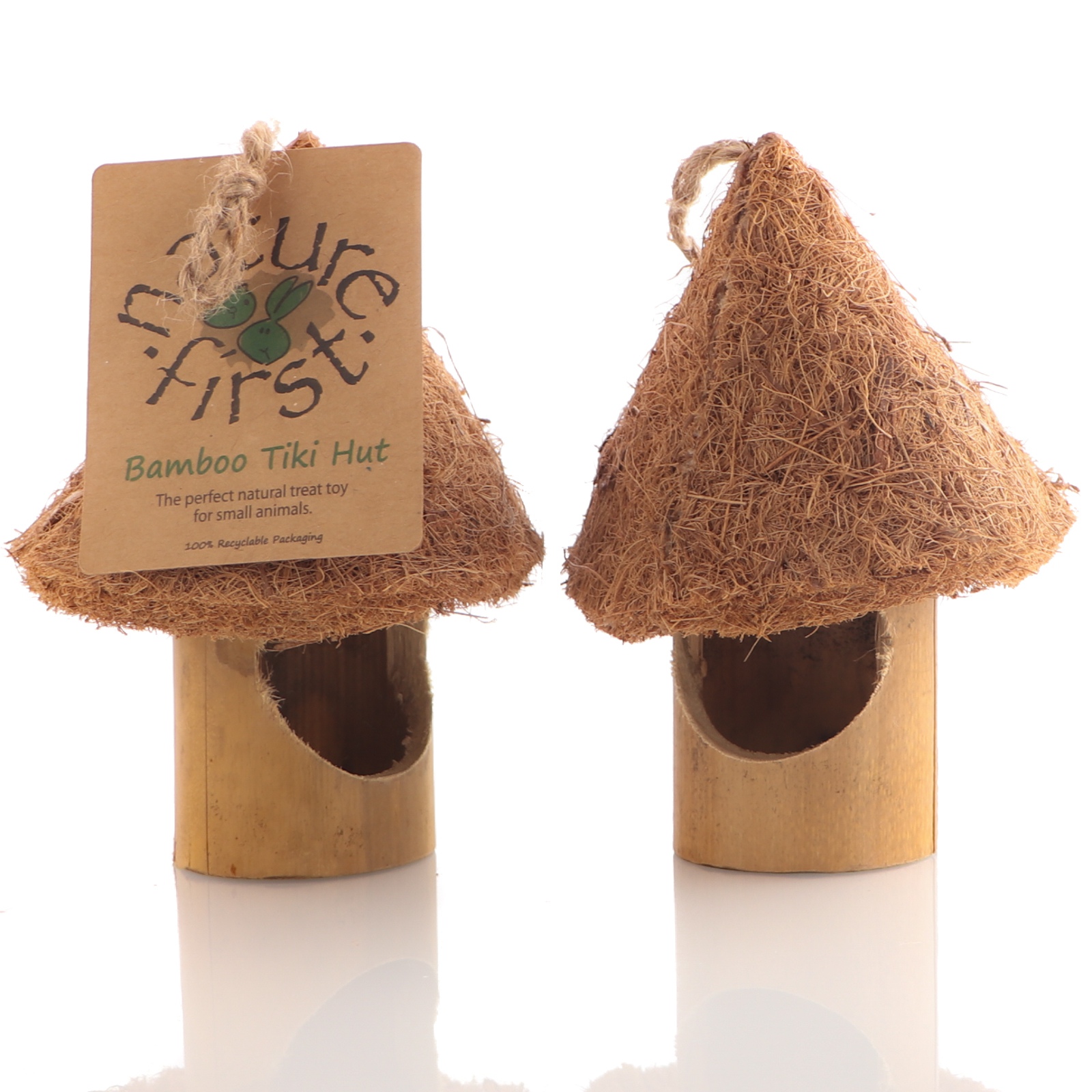 - domek wykonany z bambusa o średnicy: 6cm oraz dach zrobiony z włókna kokosowego