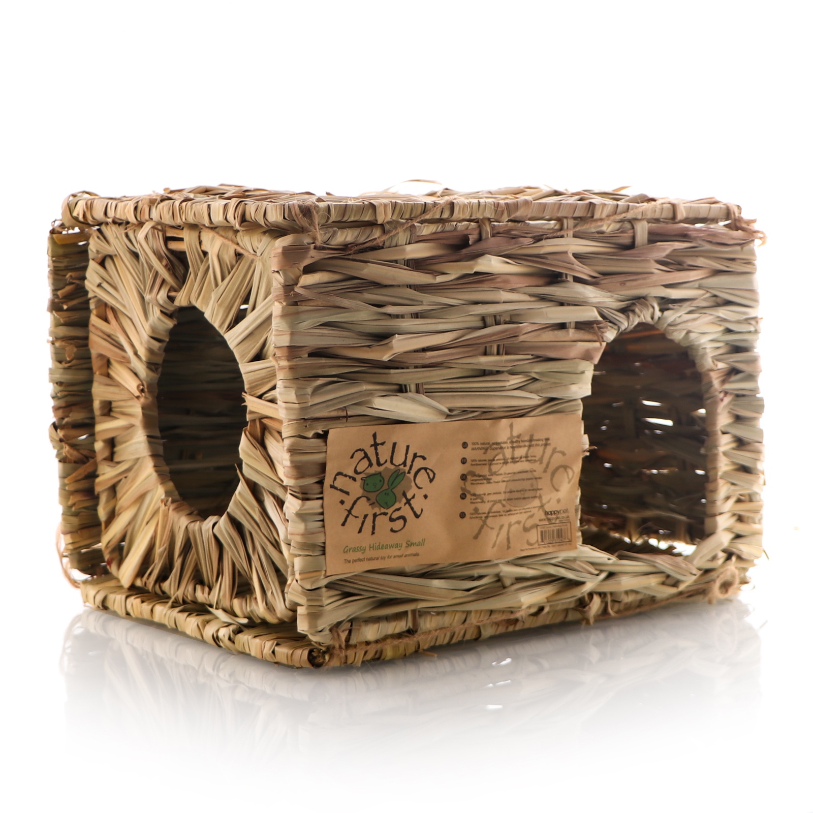 - wykonany z naturalnej ciasno plecionej suchej trawy, bezpieczny podczas gryzienia przez gryzonie