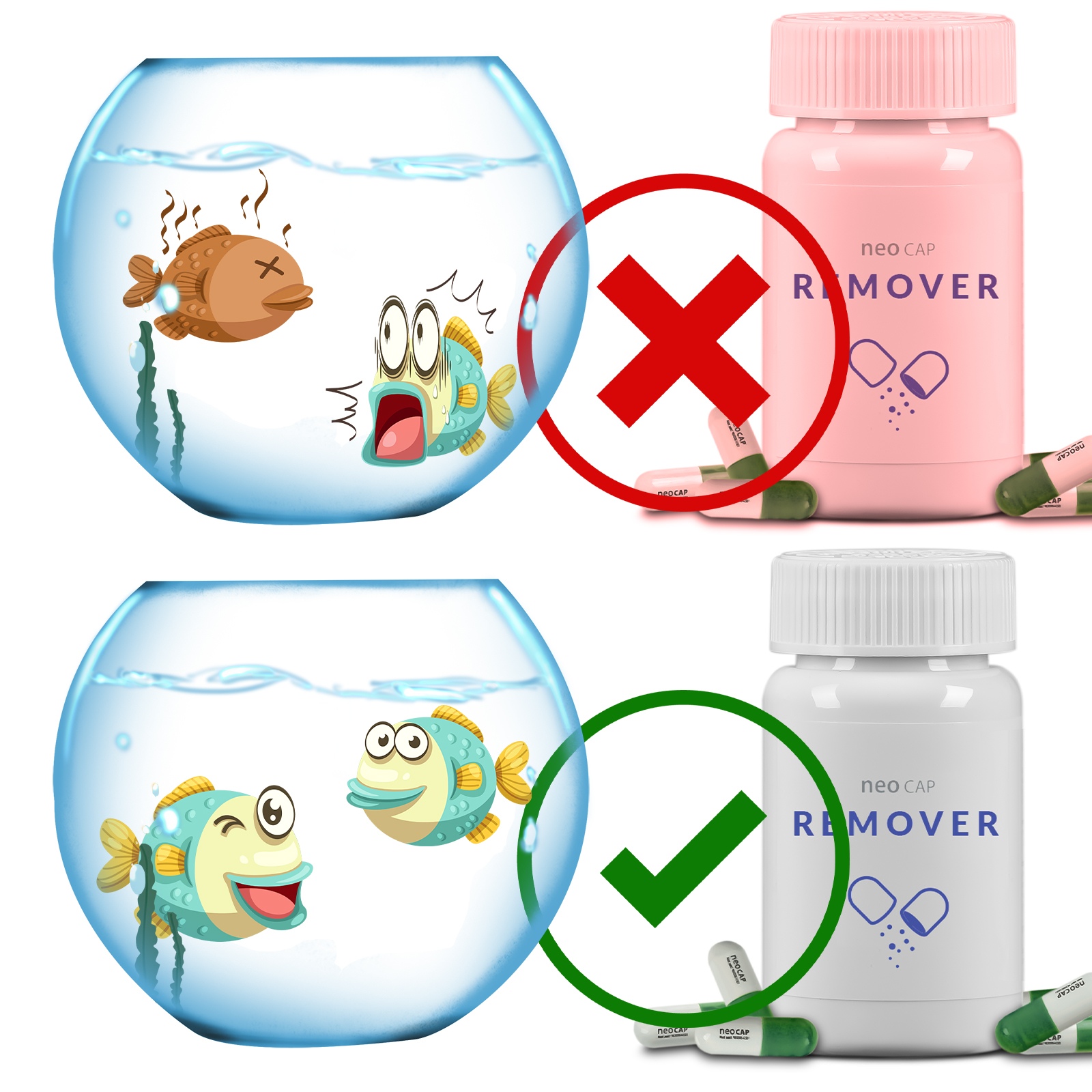Seria Neo Cap to skoncentrowane preparaty akwarystyczne w formie proszku zamkniętego w kapsułce. W ten sposób ograniczasz ilość zakupywanych butelek z różnymi płynami, które tylko zajmują miejsce i są drogie. A na koniec nigdy nie wiadomo, który płyn się akurat kończy. Tutaj sprawa jest o wiele łatwiejsza masz 20 kapsułek, a każda z nich to kilka preparatów w jednym.