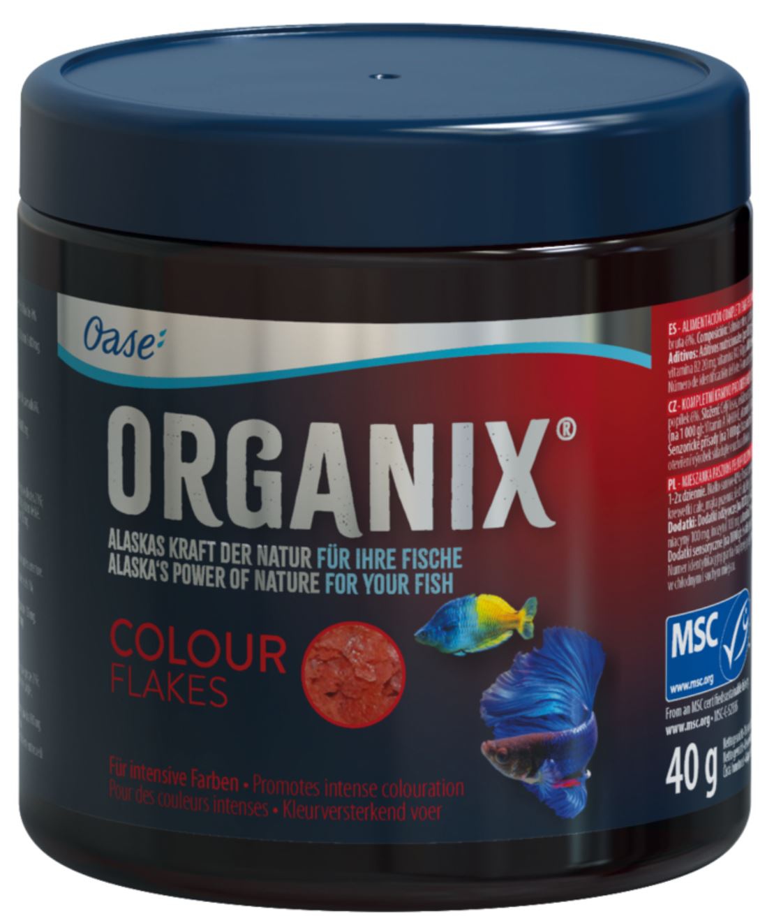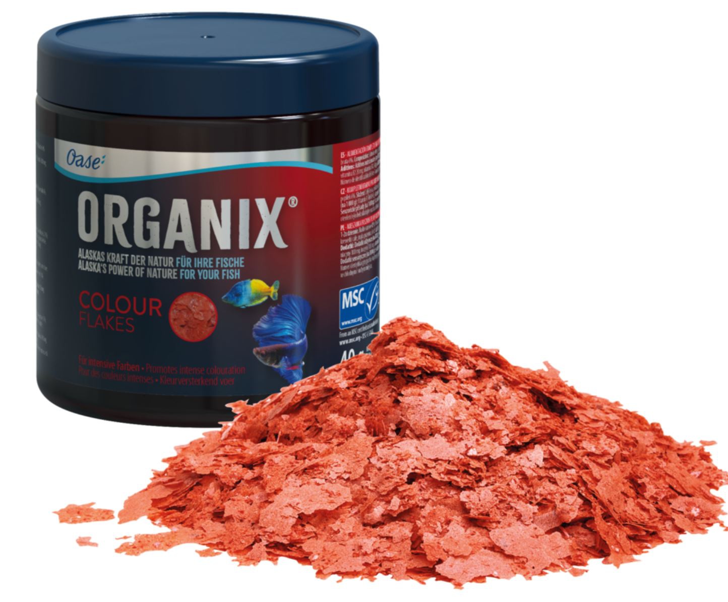 Każdy pokarm Oase posiada certyfikat MSC. Oznacza to, ze pokarm pochodzący z naturalnych złóż jest pobierany w sposób zrównoważony nie zagrażający naturalnemu środowisku.