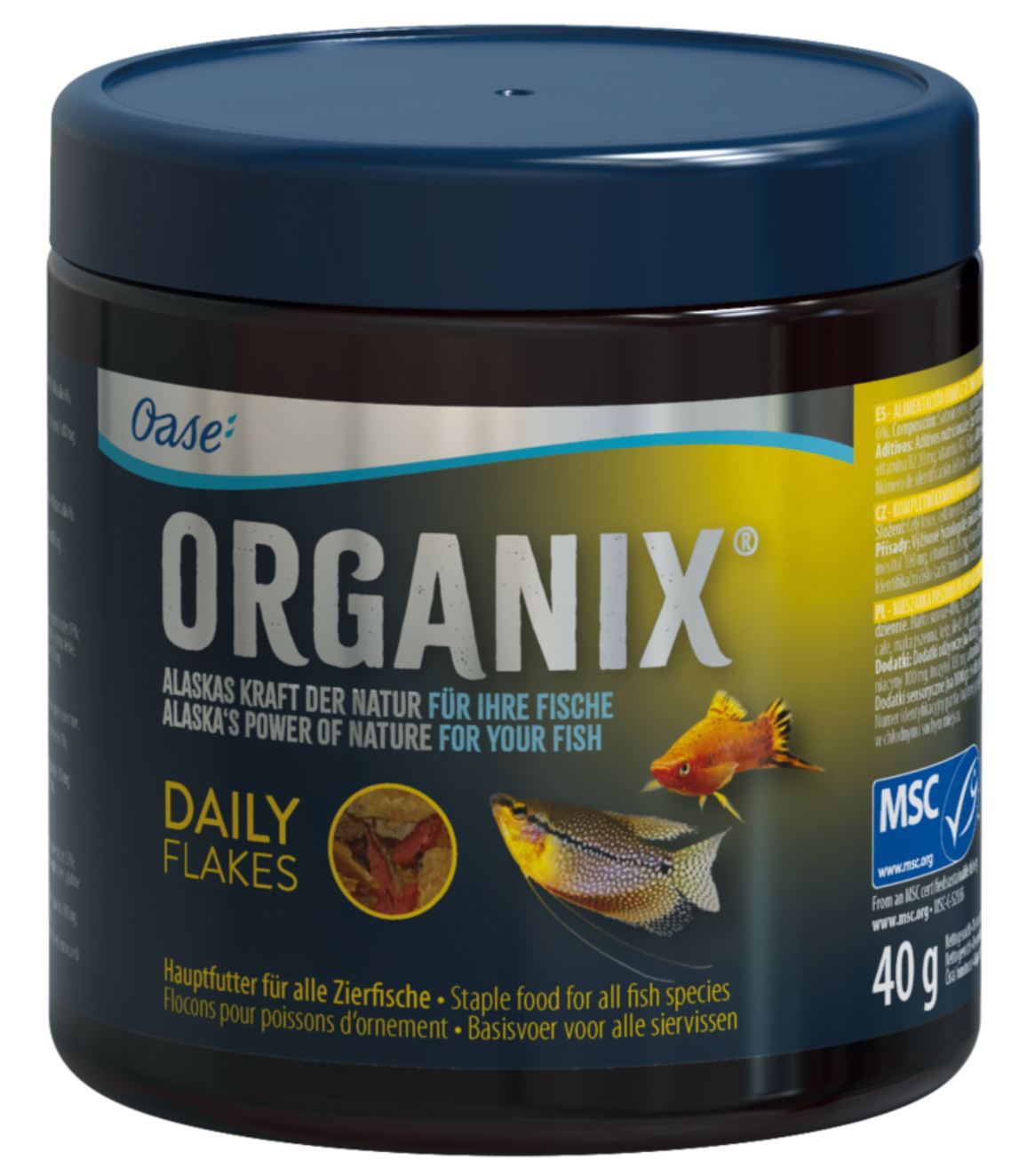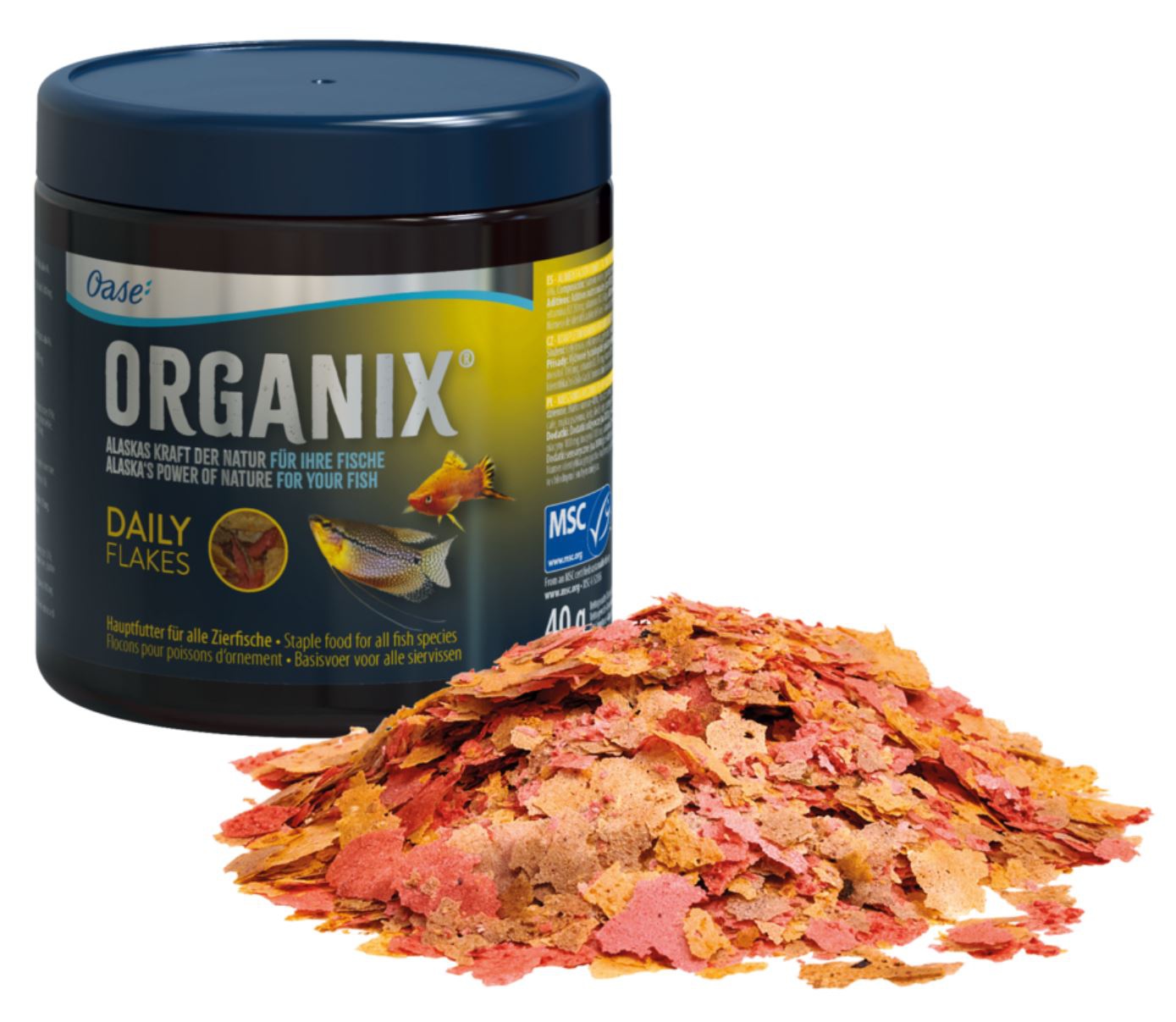 Każdy pokarm Oase posiada certyfikat MSC. Oznacza to, ze pokarm pochodzący z naturalnych złóż jest pobierany w sposób zrównoważony nie zagrażający naturalnemu środowisku.
