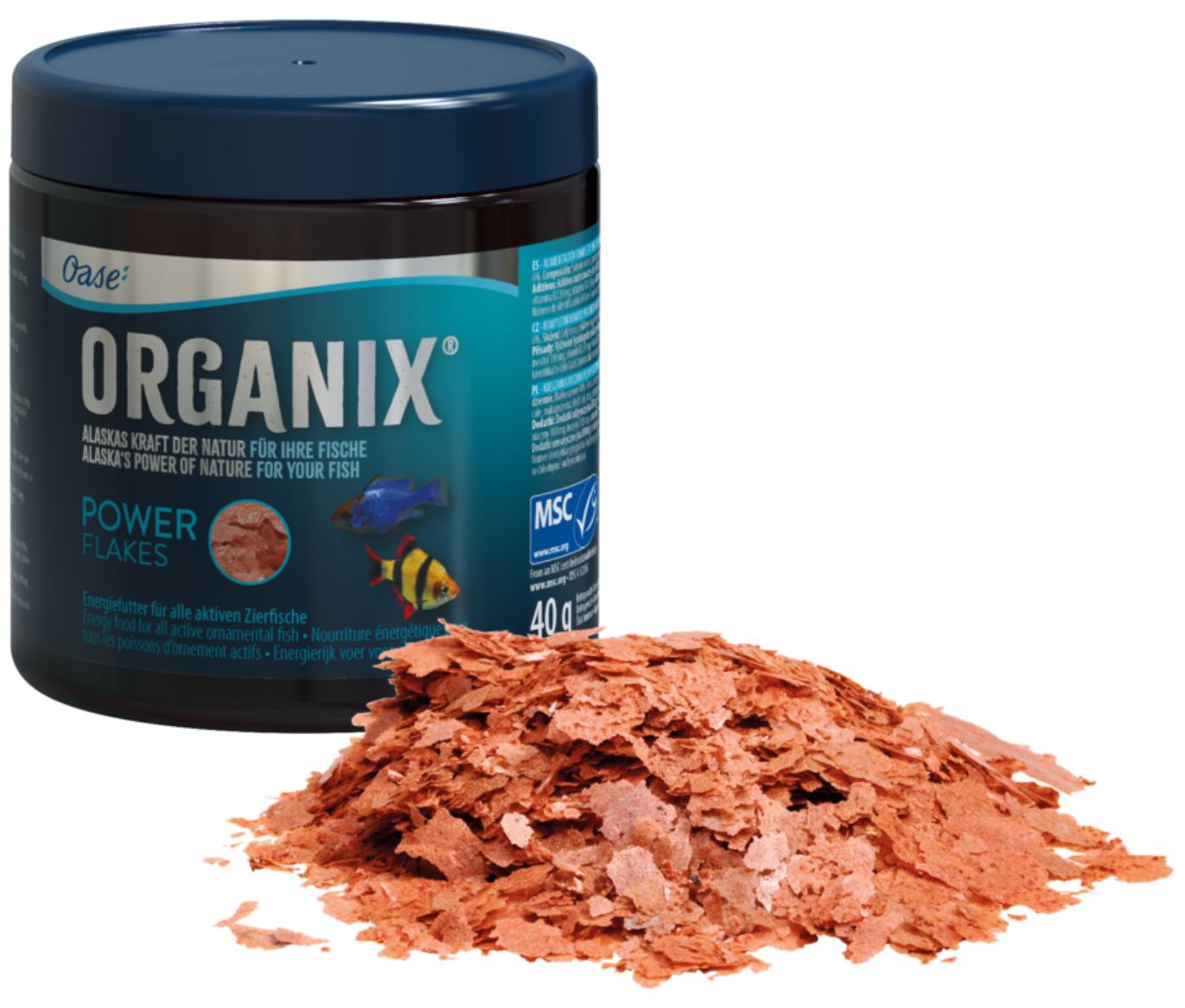 Każdy pokarm Oase posiada certyfikat MSC. Oznacza to, ze pokarm pochodzący z naturalnych złóż jest pobierany w sposób zrównoważony nie zagrażający naturalnemu środowisku.
