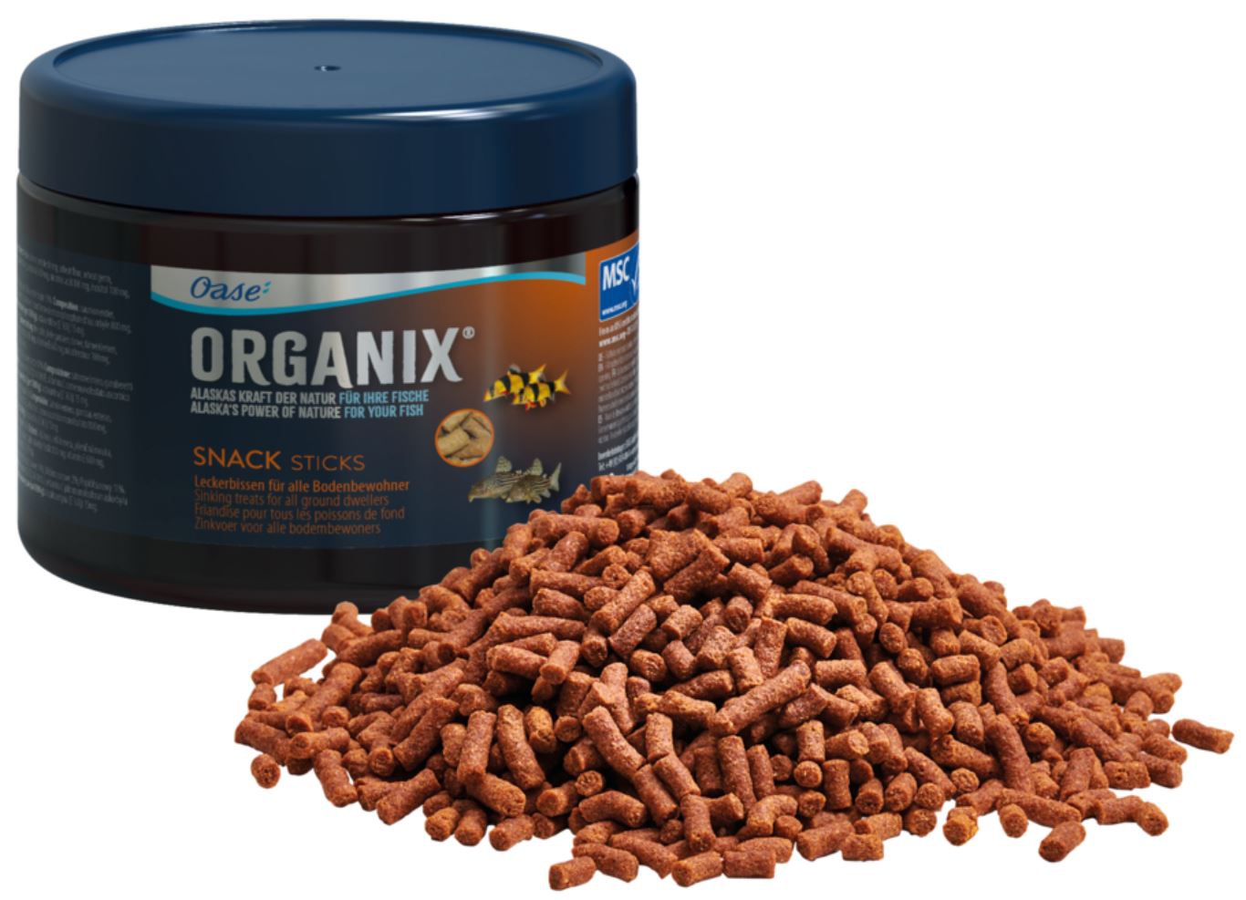 Każdy pokarm Oase posiada certyfikat MSC. Oznacza to, ze pokarm pochodzący z naturalnych złóż jest pobierany w sposób zrównoważony nie zagrażający naturalnemu środowisku.