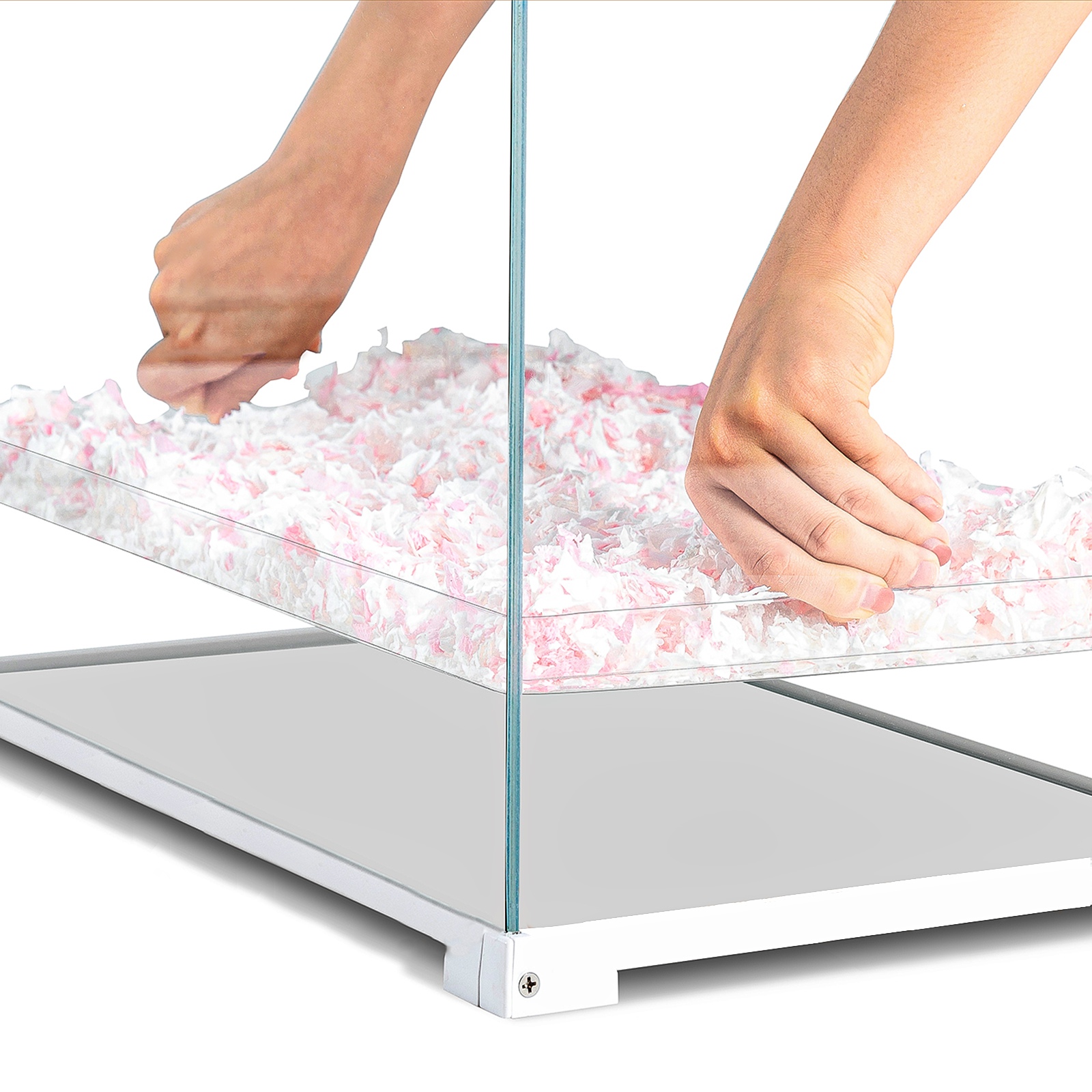 W terrarium wykorzystano nową konstrukcję, która umożliwia wygodne korzystanie z górnej pokrywy. To proste i praktyczne. Górna osłona jest przesuwana, a żeby to zrobić wystarczy ją delikatnie podnieść i pociągnąć. To duże ułatwienie przy codziennym otwieraniu i zamykaniu zbiornika. Konstrukcja zapobiega ucieczce zwierzaka.