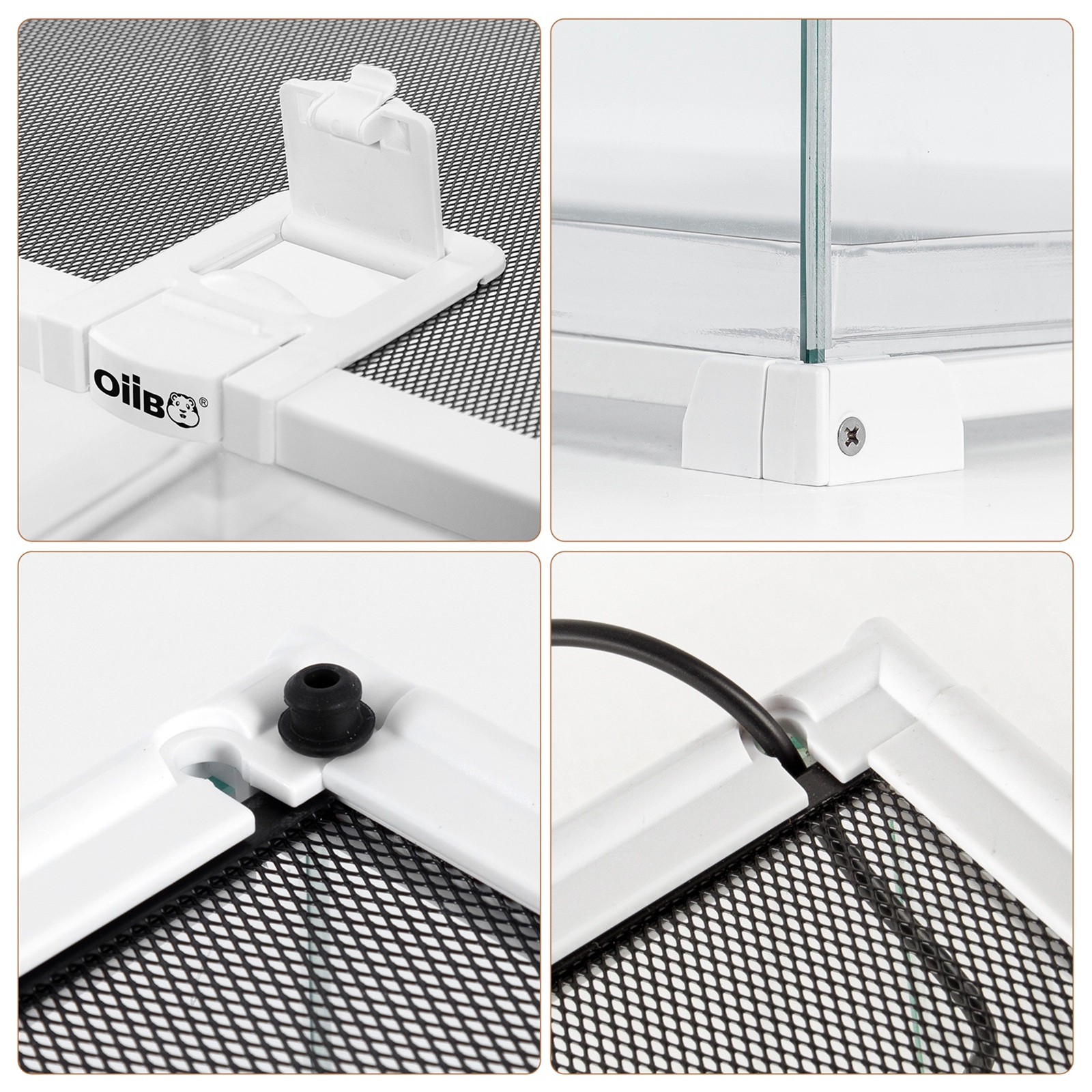 Terrarium OiiBO zaprojektowane jest z myślą o hodowli zwierząt o różnych wymaganiach środowiskowych. Umożliwia łatwy montaż oraz obserwację pupila w pełnym widoku 360°. To znacznie wpływa na kontakt ze zwierzęciem. Szklane ściany terrarium z wszystkich stron oraz siatka na górnej pokrywie zapewniają duży dostęp do światła i promieniowania UVB.