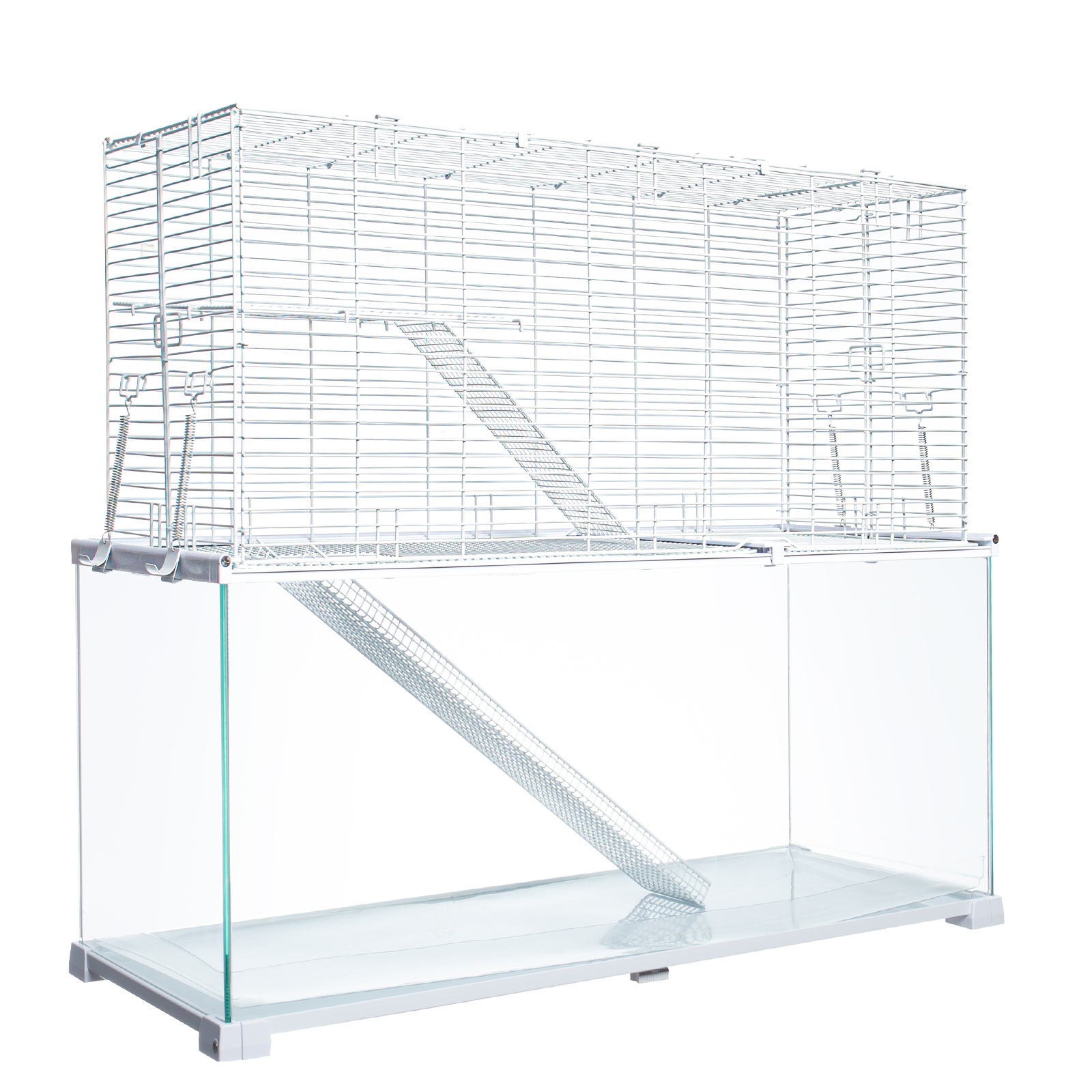 Klatka została zaprojektowana w taki sposób, aby Twój pupil czuł się w niej jak w swoim naturalnym środowisku. Jest wykonana ze szkła oraz metalu, dlatego możesz umieścić w niej swojego małego przyjaciela i zrelaksować się, nie słysząc odgłosów gryzienia. Jej całkowita przezroczystość sprawia, że masz świetny widok na aktywność gryzonia. Możesz spędzić godziny na jego obserwowaniu i podziwianiu. Szklana klatka zapobiega ucieczce zwierzęcia, jest wodoodporna i łatwa w czyszczeniu.