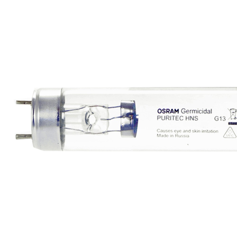 Osram Germicidal Puritec HNS 30W G13. Standardowy trzonek dwustronny / wtyk dwu-pinowy G13 (czasem opisywany jako G30). Grubość 26mm, zwana T8. Długość uśredniona 90cm.