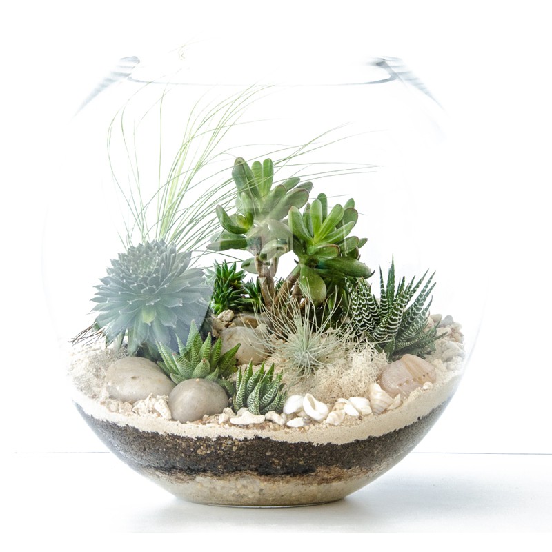 W mini ogrodach w szkle żwirek doskonale sprawdza się jako drenaż wody. Spełnia, również funkcje dekoracyjną. Układając piasek na wierzchu wygląda niezwykle zjawiskowo i naturalnie. Dodatkowo, piach można zmieszać z innego rodzajem podłoża, zwiększając jego objętość i poprawiając wymianę wody.