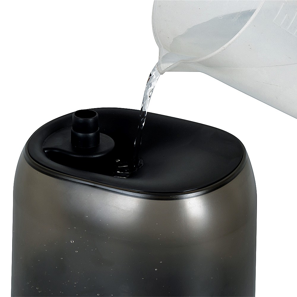 Zamgławiacz posiada duży 4 litrowy pojemnik na wodę. Taki zapas wystarczy na kilkadziesiąt dni pracy. Wodę można łatwo dolać poprzez wlot znajdujący się na górze urządzenia. Dolewanie wody nie wymaga demontażu jakiejkolwiek części.