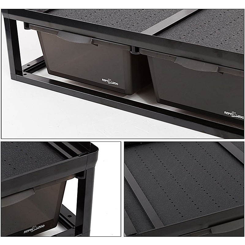 Wyjątkowe szafki terarrystyczne, są dopasowane i dedykowane pod wymiary terrarii Repti-Zoo z serii RK. Wykonane z stalowych profili o bardzo wytrzymałej konstrukcji i malowaniu proszkowym w czarnym kolorze, o tym samym odcieniu co terraria z serii RK. Umożliwiają umieszczenie na nich w pełni wyposażonego terrarium.