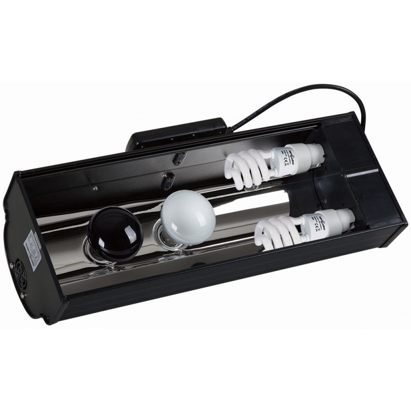 Lampa z serii Deluxe łączy w sobie tradycyjną belkę oświetleniową na żarówki z termostatem, higrostatem i programatorem czasowym. Spełnia wymagania środowiskowe dotyczące hodowli zwierząt z różnych zakątków świata, uwzględniając różnice temperatur dnia i nocy w rzeczywistym środowisku naturalnym gadów, płazów i innych zwierząt.