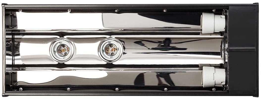 - W belce znajdują się odbłyśniki wykonane z wysoko polerowanej stali nierdzewnej redukując straty oraz wzmacniając emisję promieniowania UV.