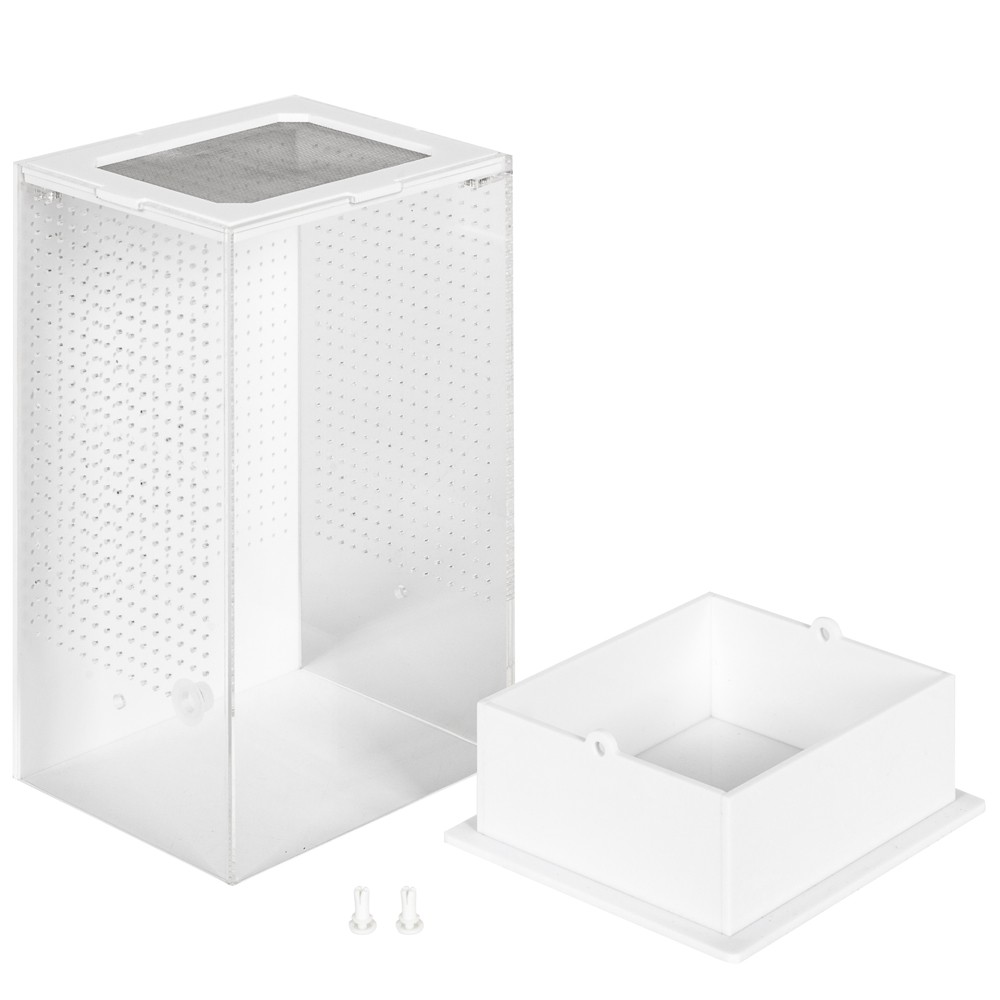Wykonanie pojemnika z akrylu ma swoje powody. Przede wszystkim Box jest wytrzymały na uszkodzenia mechaniczne oraz jest o wiele lżejszy. Dodatkowo, jest o wiele bardziej przejrzysty. Tylko w takim materiale była możliwość stworzenia terrarium o poniższych cechach:
