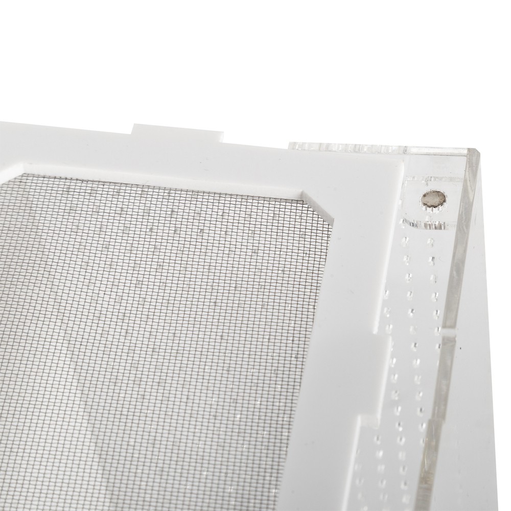 Wszystkie ścianki wykonane są z akrylu. W bocznych oraz w tylnej ściance znajdują się otwory zapewniające prawidłową wentylację. Średnica otworków to 0,9mm.