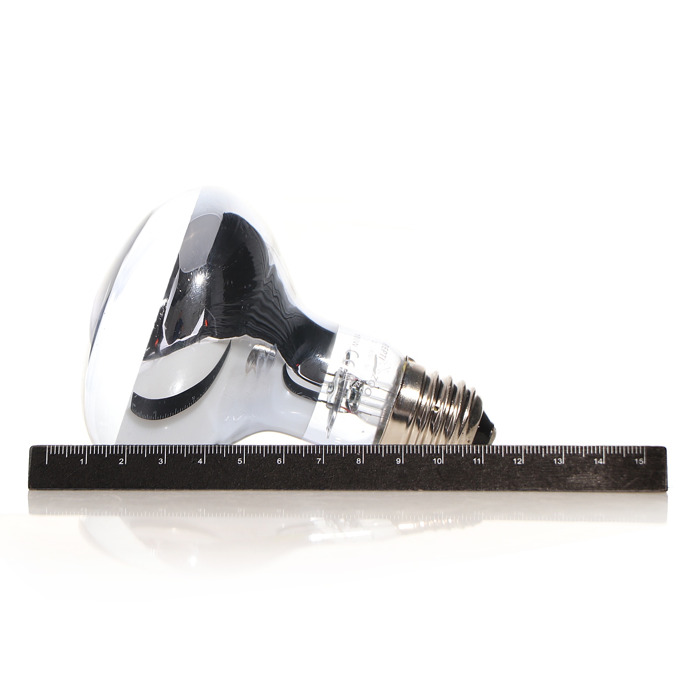 Tylko górna część żarówki pokryta jest lustrzanym reflektorem. Dlaczego? Dzięki temu żarówka świeci w dół nie tracąc mocy na grzanie w górę. Ale to nie wszystko! Druga część jest całkowicie przejrzysta. Uwalnia to moc grzania i naświetlania na szeroką skalę. Dlatego żarówka ogrzewa całe terrarium i dodatkowo mocno skupia światło na wyspę ciepła.