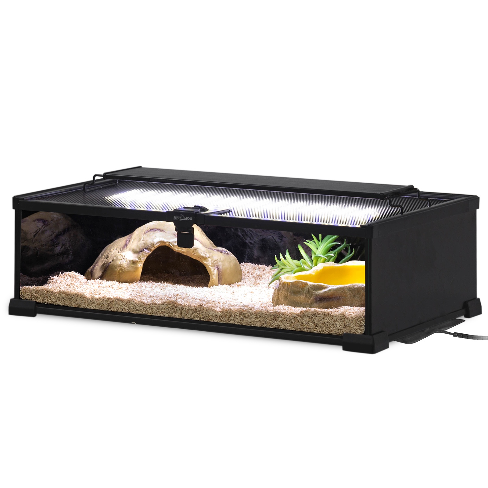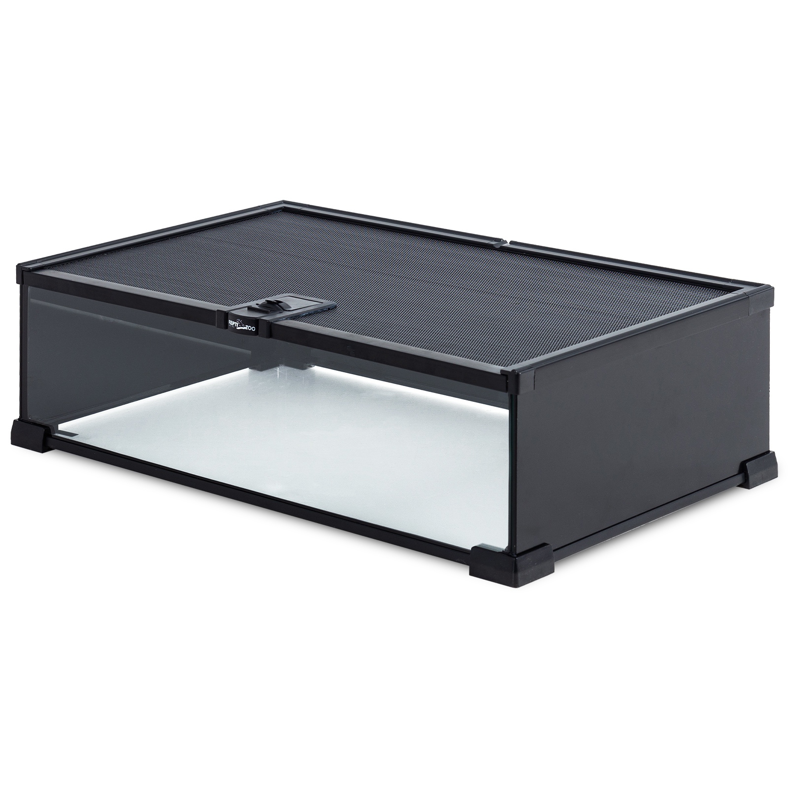 Terrarium serii Night Habitat przeznaczone jest dla zwierząt o nocnym trybie życia. Perłowo czarne ścianki pochłaniają światło dając zwierzakowi poczucie "nocy" w dzień. Od teraz możesz się cieszyć zwierzakiem i jego naturalną nocną aktywnością w dzień.
