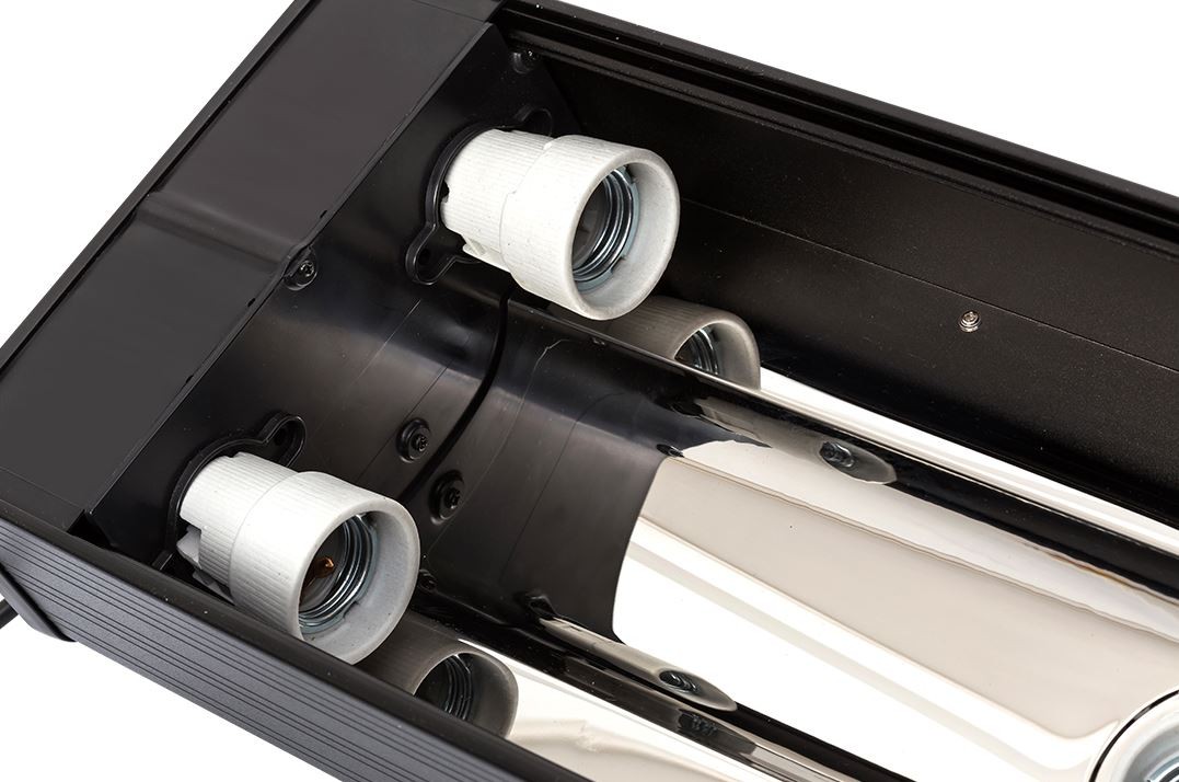 W belce znajdują się odbłyśniki wykonane z wysoko polerowanej stali nierdzewnej redukując straty oraz wzmacniając emisję promieniowania UV.