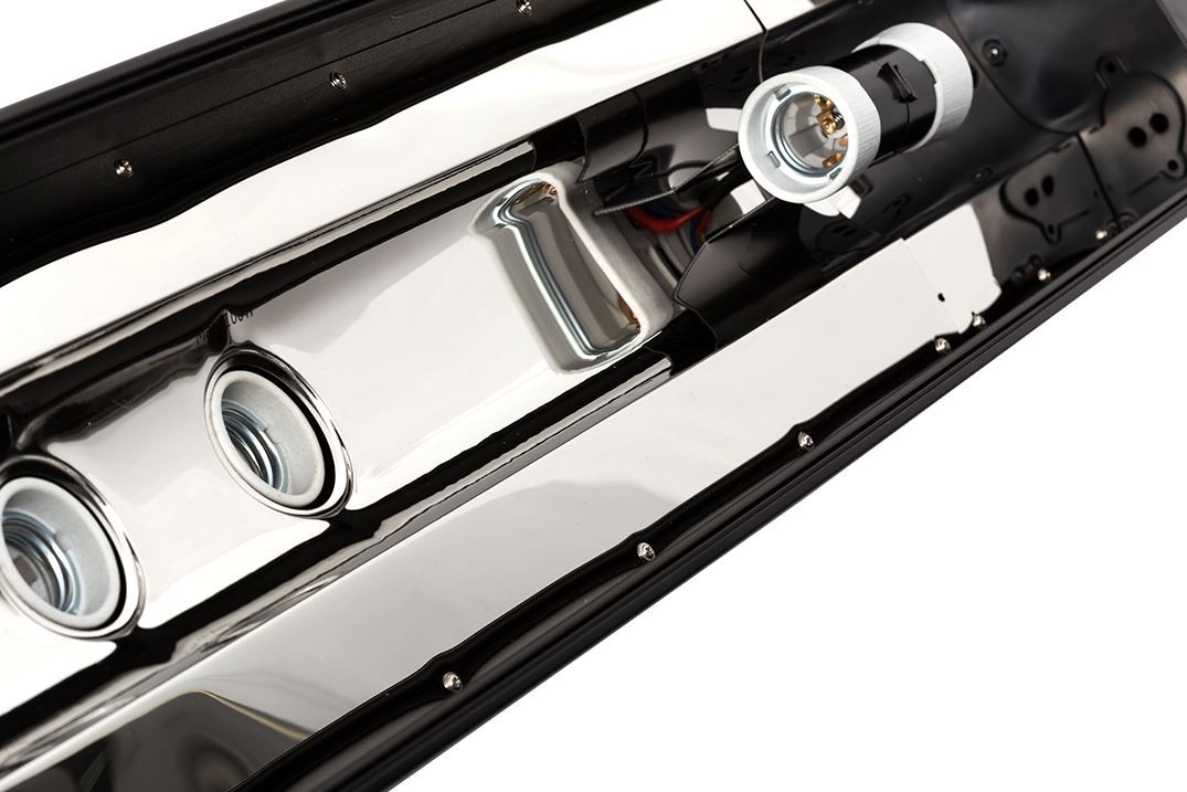 W belce znajdują się odbłyśniki wykonane z wysoko polerowanej stali nierdzewnej redukując straty oraz wzmacniając emisję promieniowania UV.