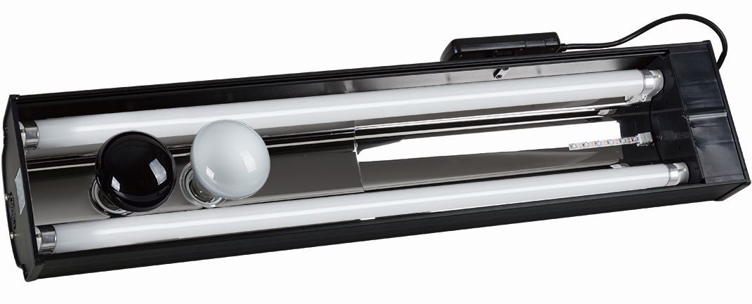 Lampa z serii Exclusive łączy w sobie tradycyjną belkę oświetleniową na świetlówki oraz żarówki z termostatem, higrostatem i programatorem czasowym. Spełnia różnorodne wymagania środowiskowe dotyczące hodowli zwierząt z różnych zakątków świata, uwzględniając różnice temperatur dnia i nocy w rzeczywistym środowisku naturalnym gadów, płazów i innych zwierząt.