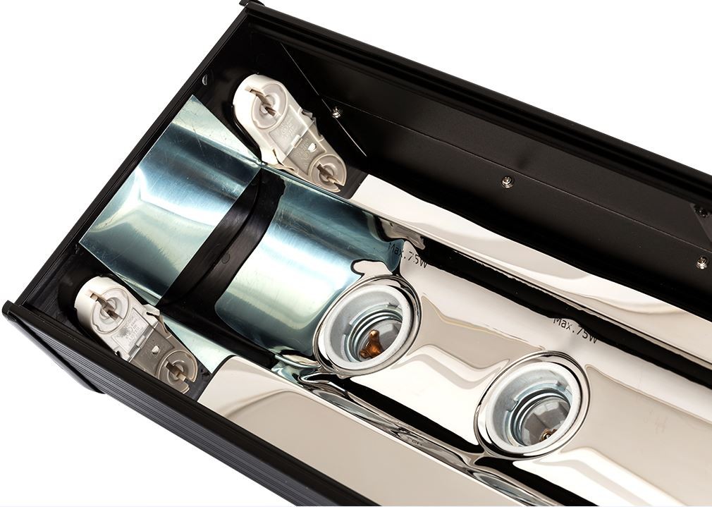 W belce znajdują się również odbłyśniki wykonane z wysoko polerowanej stali nierdzewnej redukując straty oraz wzmacniając emisję promieniowania UV.