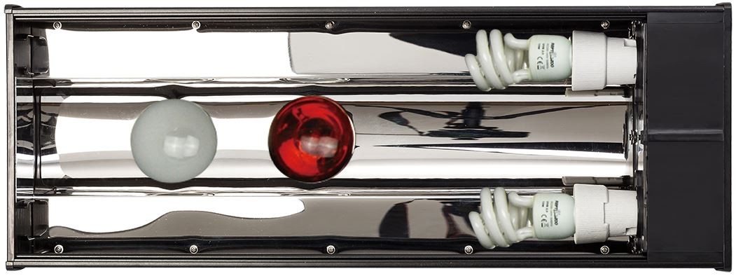 W belce znajdują się odbłyśniki wykonane z wysoko polerowanej stali nierdzewnej redukując straty oraz wzmacniając emisję promieniowania UV.