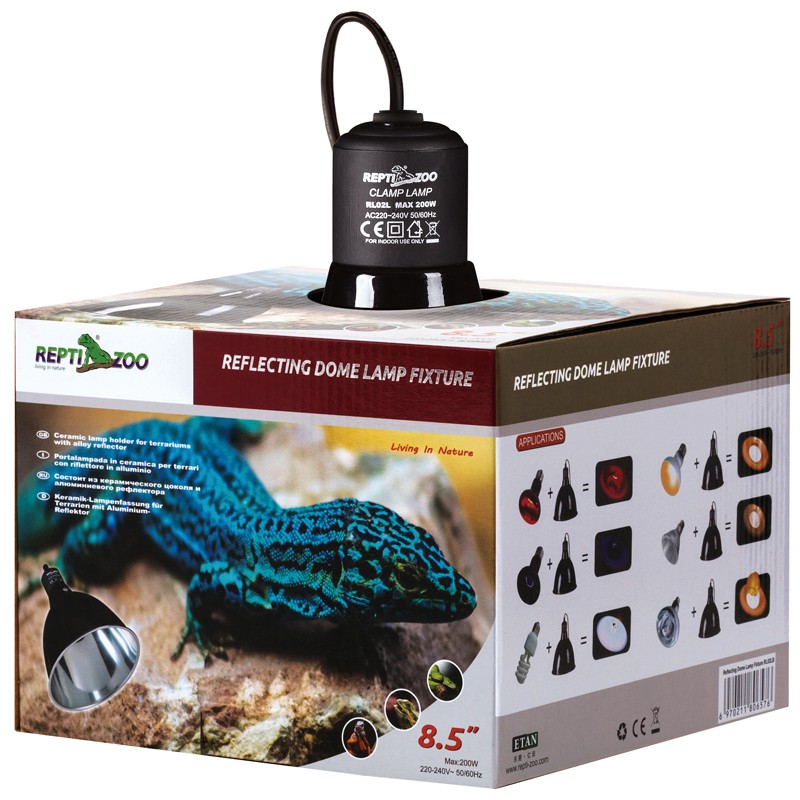 - RL03B: rozprowadza ciepło po sporej powierzchni terrarium, większej niż lampa RL02B. Polecana do żarówek grzewczych o każdej mocy.