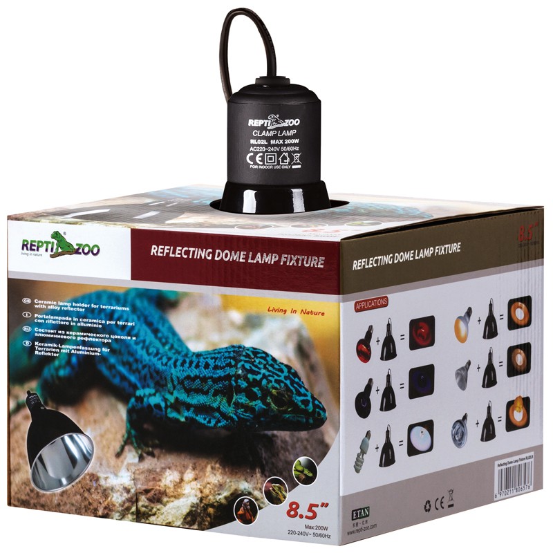- RL03B: rozprowadza ciepło po sporej powierzchni terrarium, większej niż lampa RL02B. Polecana do żarówek grzewczych o każdej mocy.