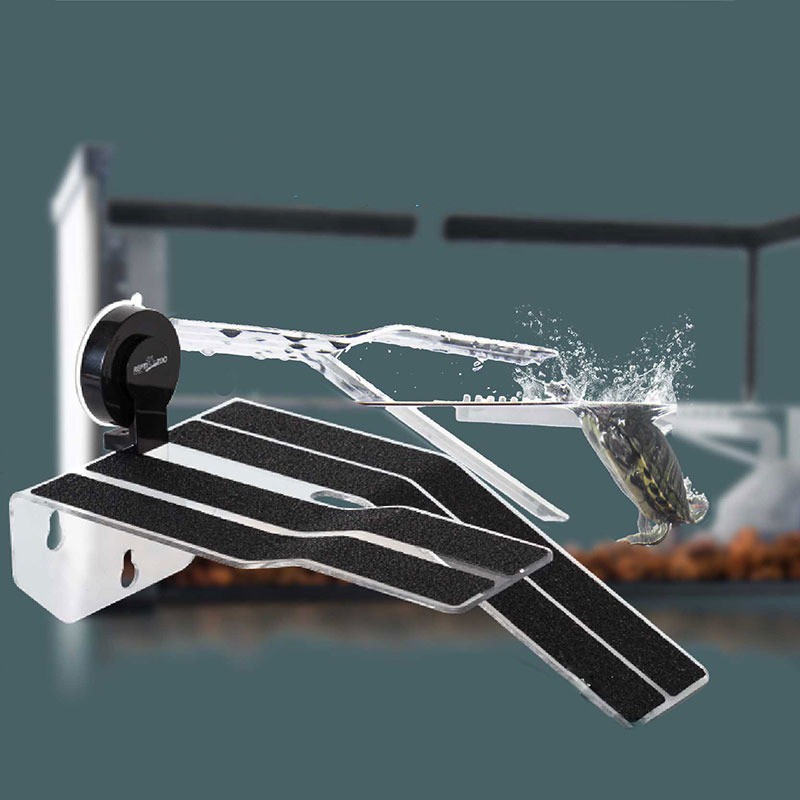 Specjalna mata, którą rampa została pokryta, umożliwia łatwe "wdrapanie się" żółwia na rampę.