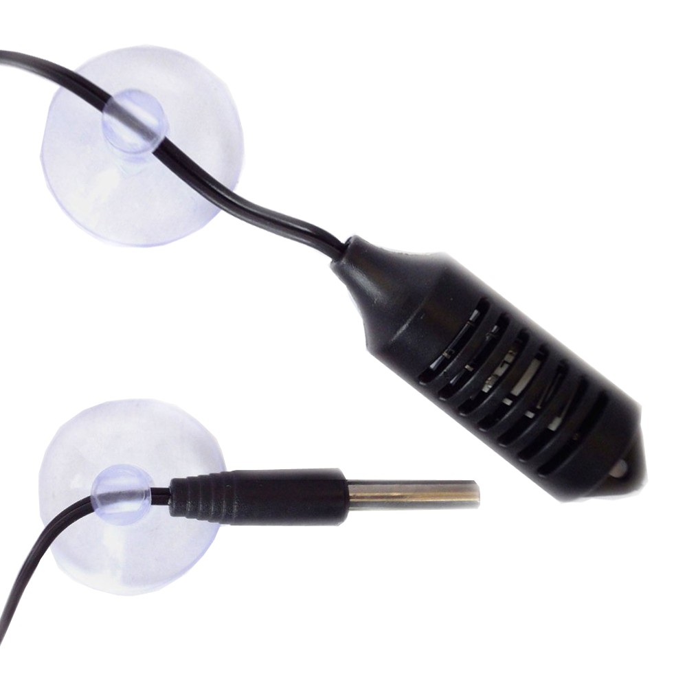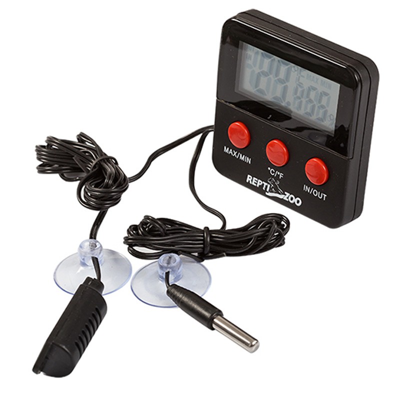 Zatem, można śledzić warunki panujące w terrarium jaki poza nim lub można śledzić warunki w terrarium z trzech różnych miejsc (2 x sonda na kablu + sondy w aparacie)
