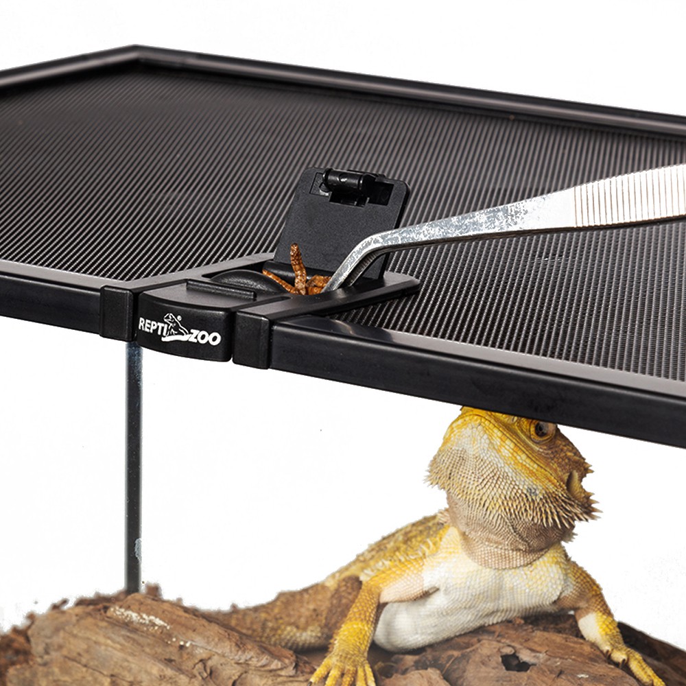 Górna pokrywa posiada niewielki otwór przeznaczony do podawania pokarmu, bez potrzeby otwierania terrarium. Otwór jest zamykany, co uniemożliwia ucieczkę zwierzęciu.
