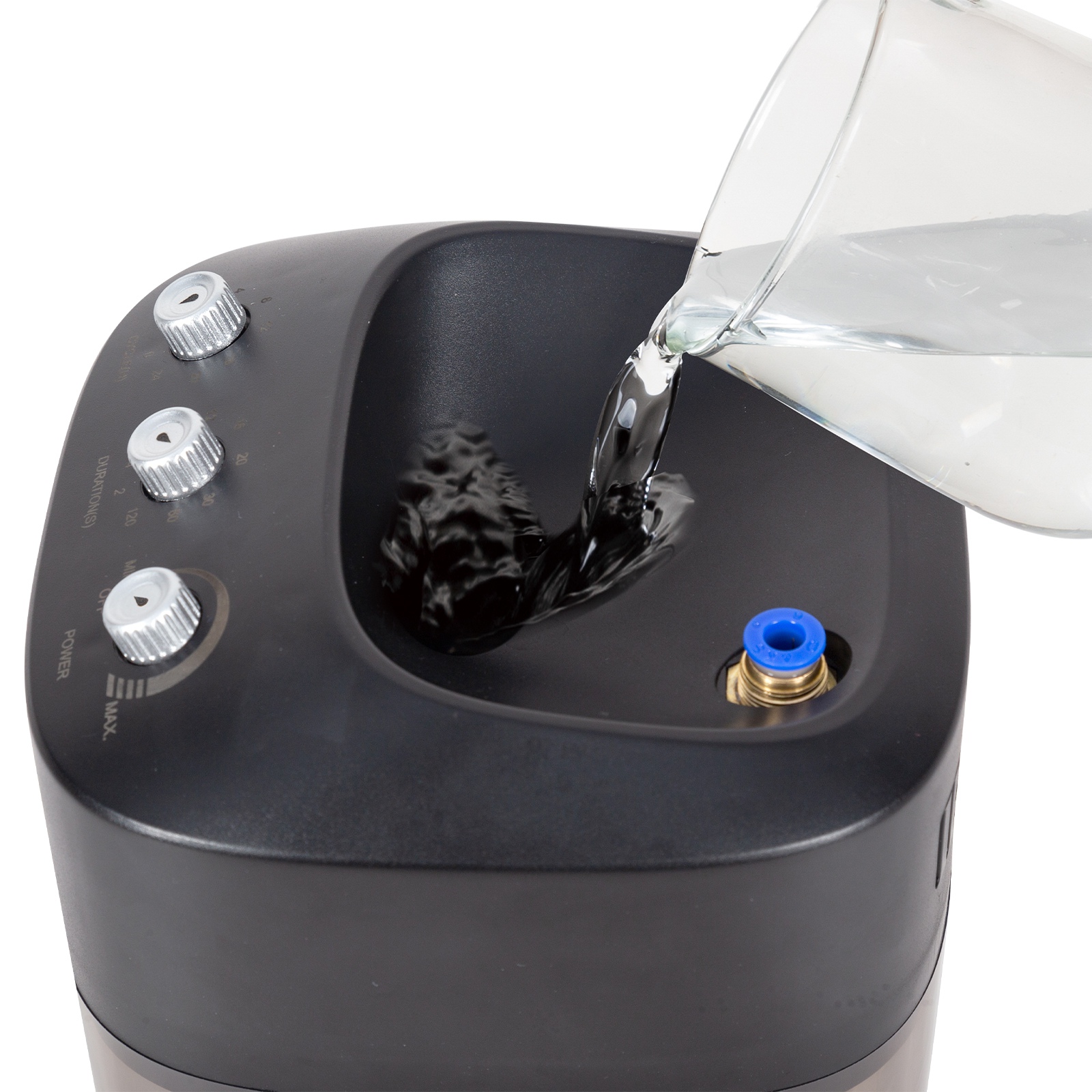Pojemnik ma pojemność 2200ml. Łatwo możesz dolewać wodę bez konieczności deinstalacji urządzenia. W pokrywie znajdują się otwór w zagłębieniu. Po prostu wlej tam wodę.