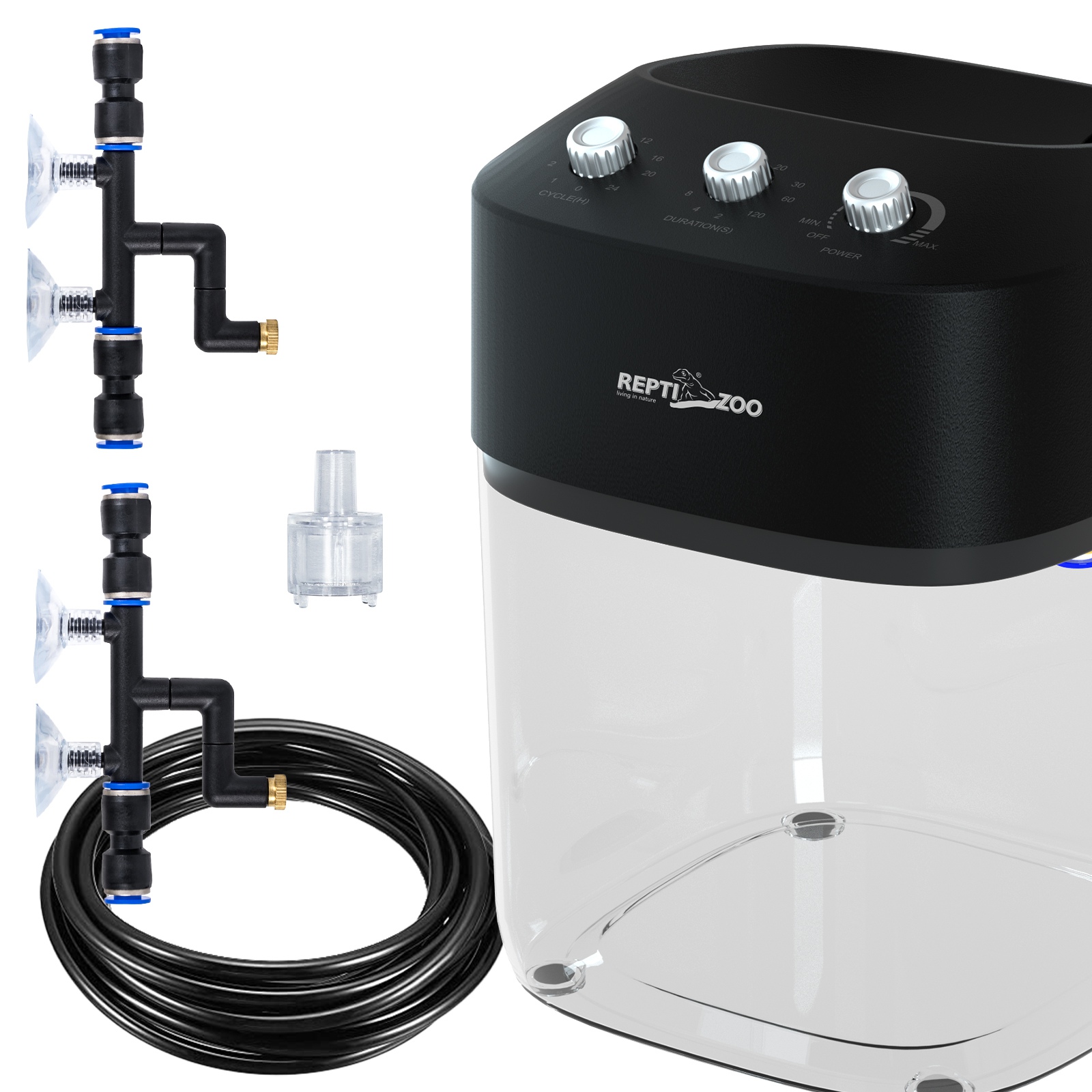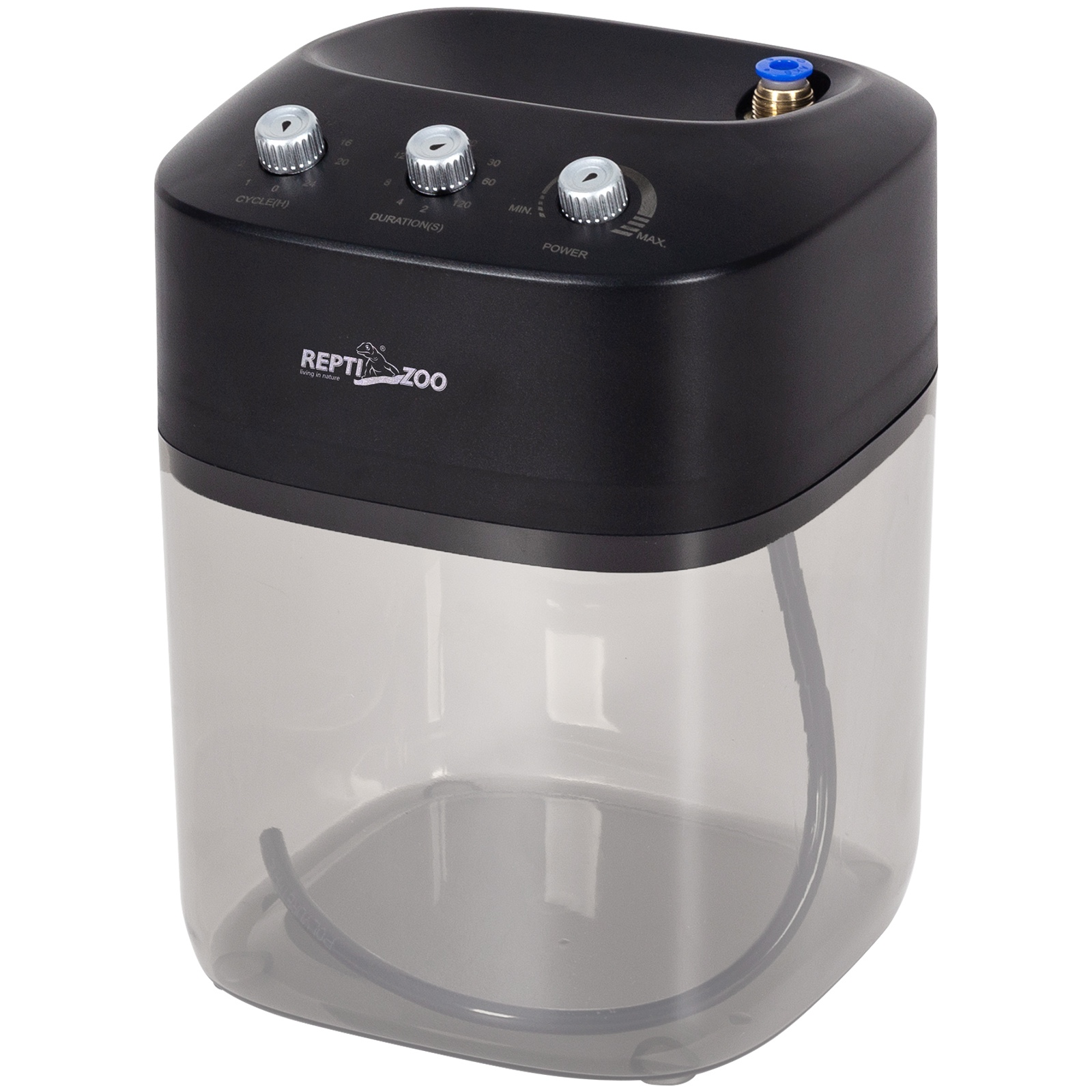 Zraszacz o rozbudowanym systemie sterowania, podobnym do wersji Maxi i Multi. Można powiedzieć, że jest ich mniejszą kopią, która zachowuje całą swoją funkcjonalność. Jedyna różnica to gabaryt - wersja Solo Starter ma pojemnik 2.2l a całość z łatwością schowamy przy terrarium.