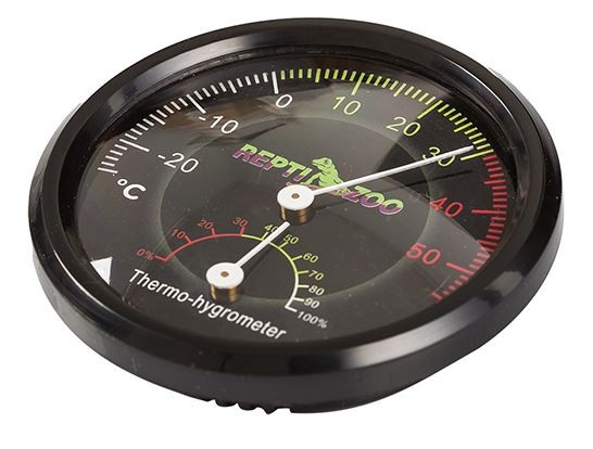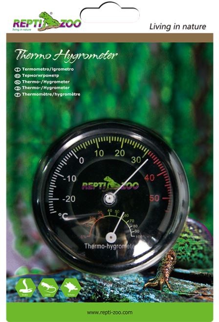 Zegar Repti-Zoo montowany jest na samoprzylepnej taśmie co gwarantuje pewne i trwałe zamontowanie urządzenia. Skala posiada precyzyjną podziałkę (co 1'C , 5% wilgotności) oraz barwy z przypisami informujące o komforcie warunków panujących wewnątrz wybiegu.