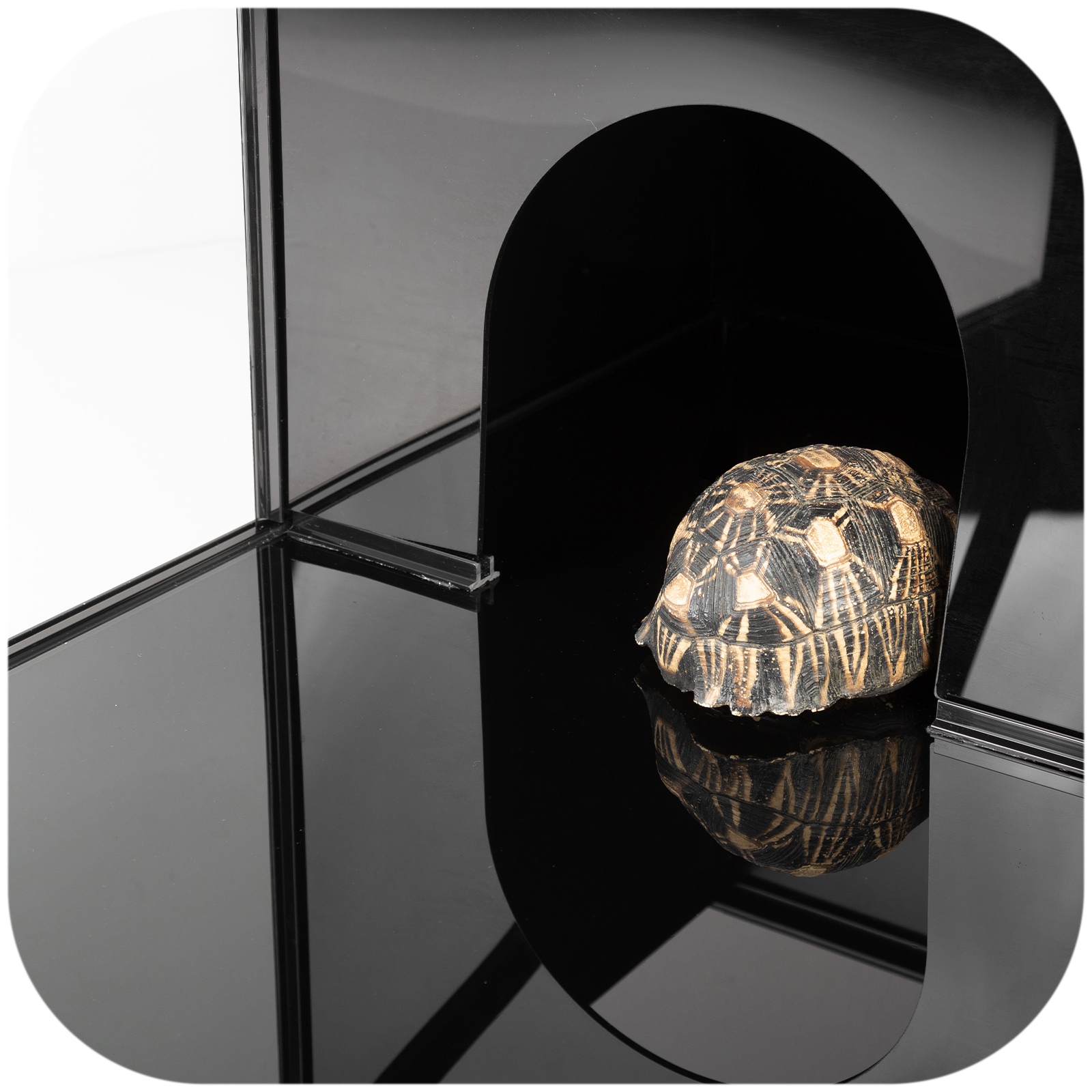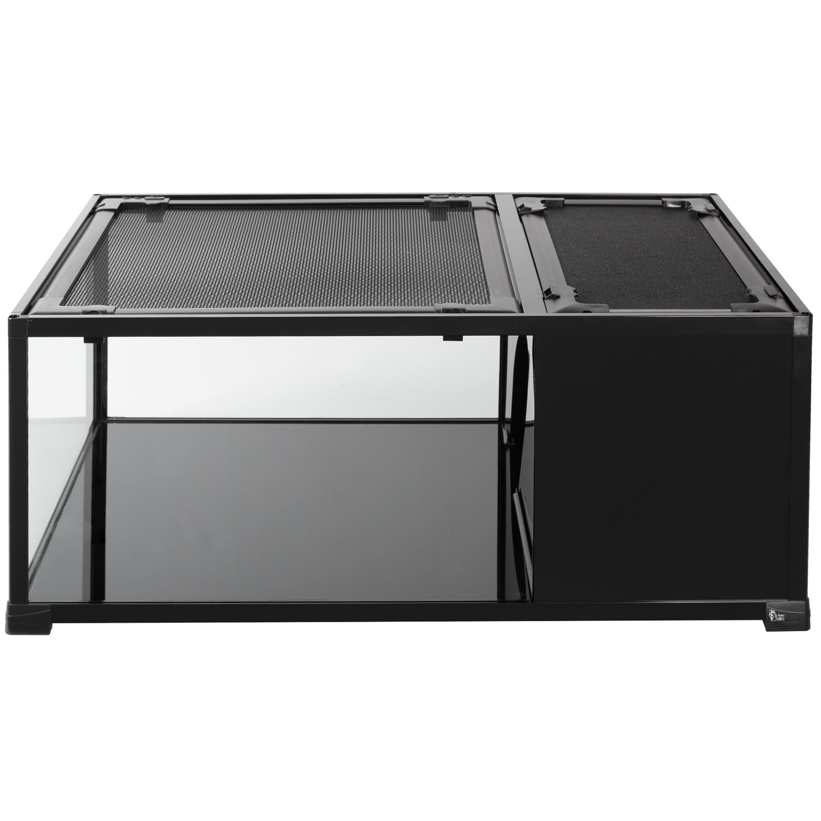 Terrarium szklane, składane przeznaczone dla żółwi lądowych. Posiada szklane ścianki, jest szczelne, ma wodo i ognioodporną siatkę stalową jako pokrywę. Terrarium jak i siatka dzielone są na dwie części: do aktywności dziennej oraz do odpoczynku. Przepusty na kable, nóżki, otwierana pokrywa to tylko niektóre udogodnienia, które to terrarium posiada.