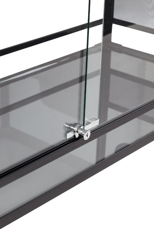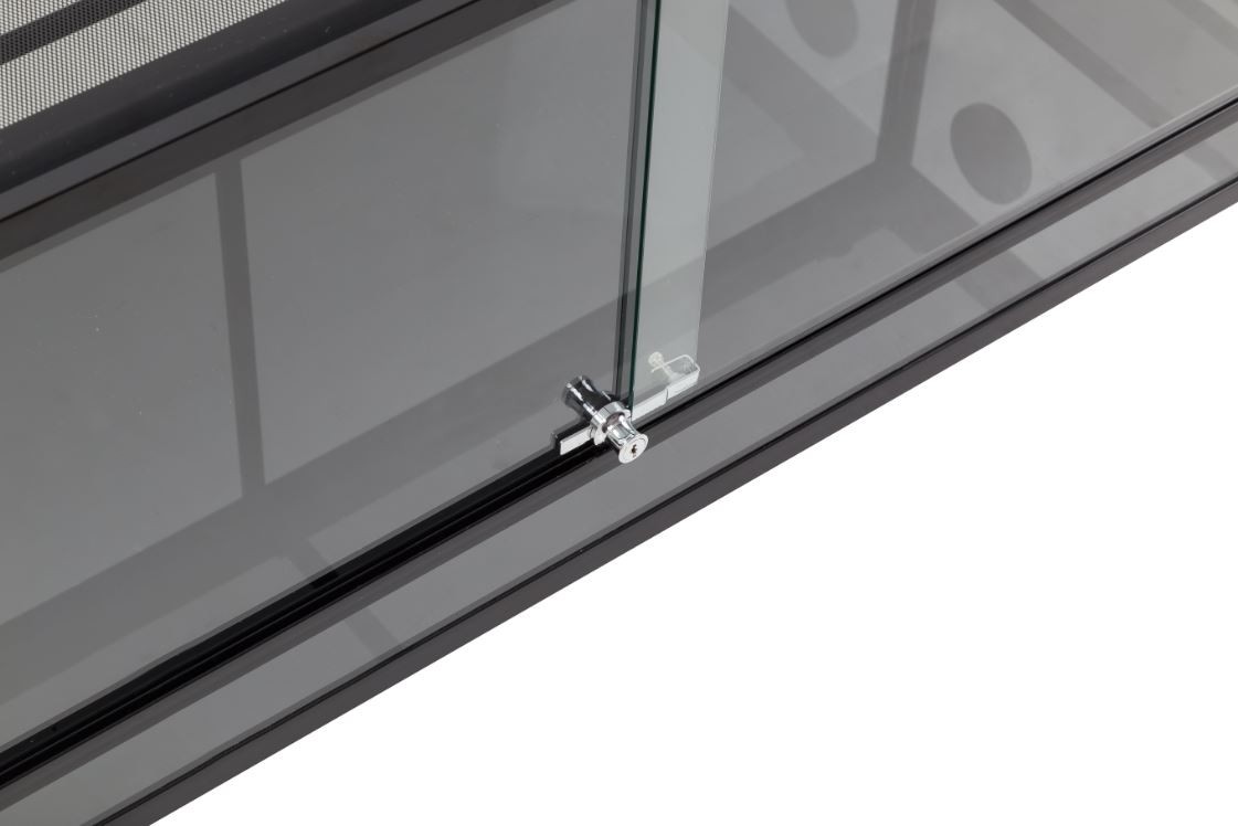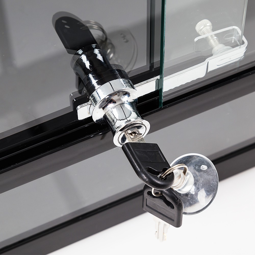 Każde Terrarium z serii RK posiada zamek z kluczykiem zamontowany na drzwiach przesuwanych. Jest to standardowe zabezpieczenie przed przypadkowym otwarciem drzwi przez pupila. Jednocześnie uniemożliwia niepożądanym osobom dostęp do wnętrza wybiegu od zewnątrz. Jest to niezwykle ważne podczas hodowli zwierząt jadowitych czy agresywnych w domu w którym znajdują się dzieci. W zestawie znajduje się dodatkowy kluczyk.
