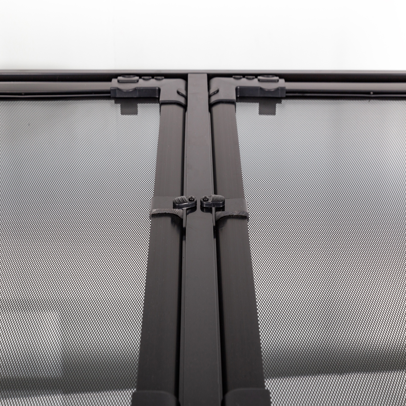 - ściągana górna siatka z ognio i wodoodpornej stali: