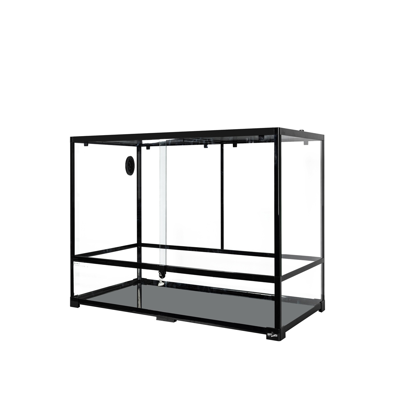 Wysokiej jakości szkło, z którego wyprodukowane są ścianki boczne jak i podstawa, jest niezwykle przejrzyste. Zapewnia to doskonały widok na naszego ulubieńca, nie ujmując nic z estetyki, nie zmieniając barw dekoracji umieszczonych wewnątrz wybiegu oraz nie powoduje załamywania się światła czy tworzenia efektu soczewki.