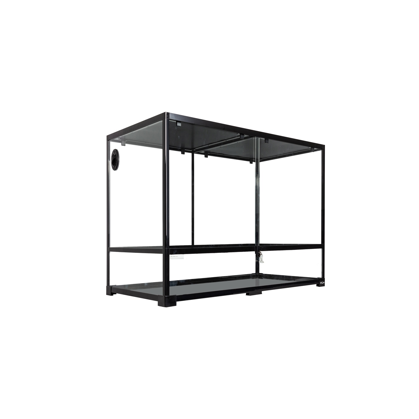 Całe terrarium umieszczone jest na specjalnych podstawkach, dzięki czemu nie ma potrzeby podkładania mat akwarystycznych oraz umożliwia podłożenie pod terrarium matę grzewczą.
