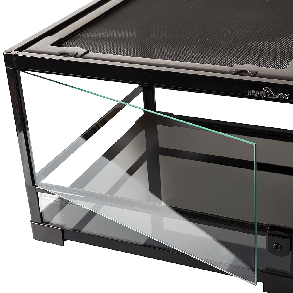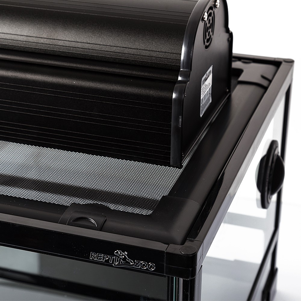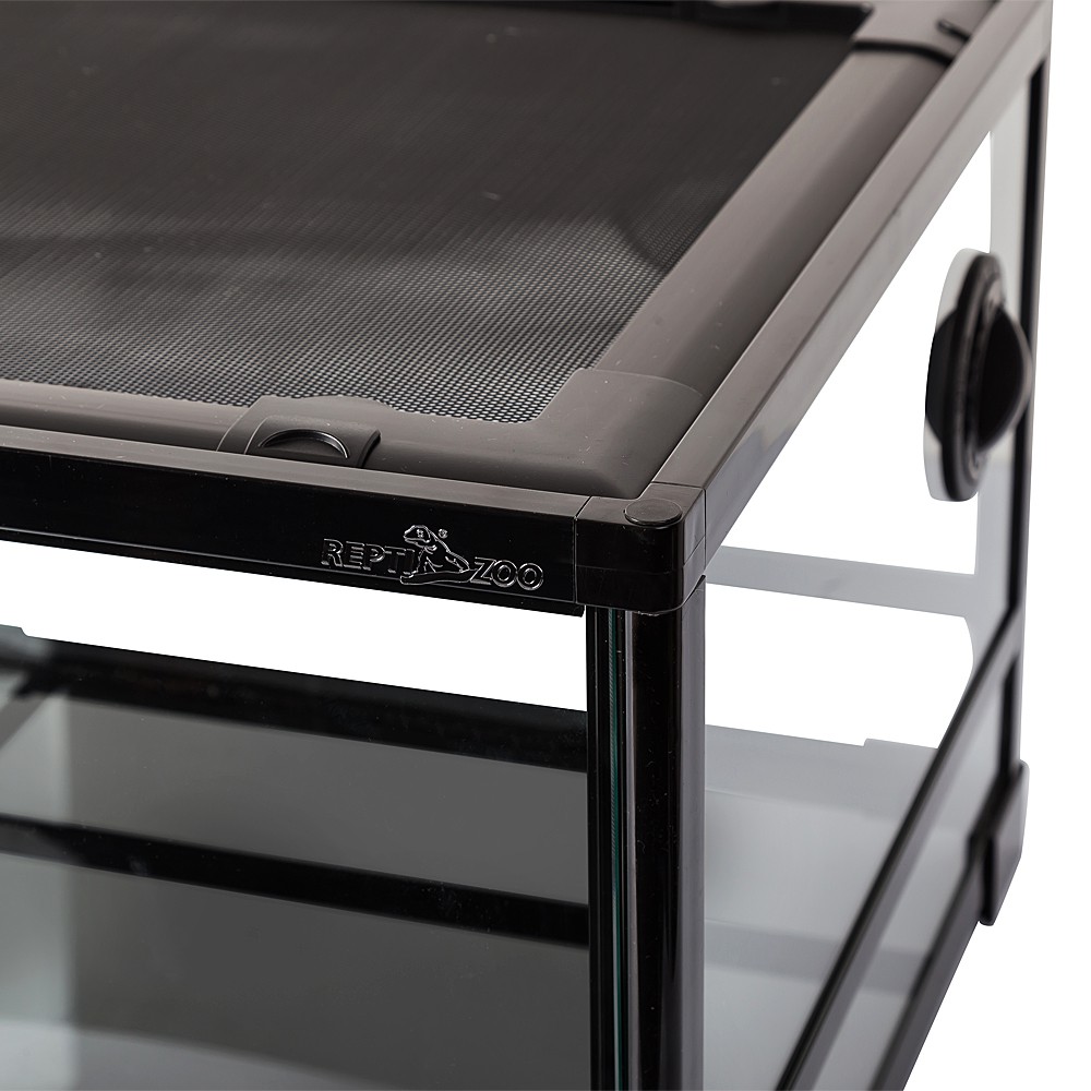 Górną pokrywę terrarium stanowi odporna na wysokie temperatury i rdzewienie stalowa siatka. Siatka ta jest w całości wyjmowana, co ułatwia dostęp do wnętrza terrarium bez ryzykowania ucieczki zwierzęcia oraz stresowania zwierzęcia. Jednocześnie jest ona zabezpieczona specjalnymi zamkami uniemożliwiając, nawet najsilniejszemu pupilowi, ucieczkę. Siatka zapewnia doskonałą wymianę gazową dodatkowo zabezpiecza pupila przed poparzeniem się w przypadku kontaktu z lampą grzewczą.
