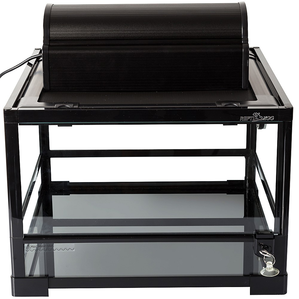 Całe terrarium umieszczone jest na specjalnych podstawkach, dzięki czemu nie ma potrzeby podkładania mat akwarystycznych oraz umożliwia podłożenie pod terrarium matę grzewczą.