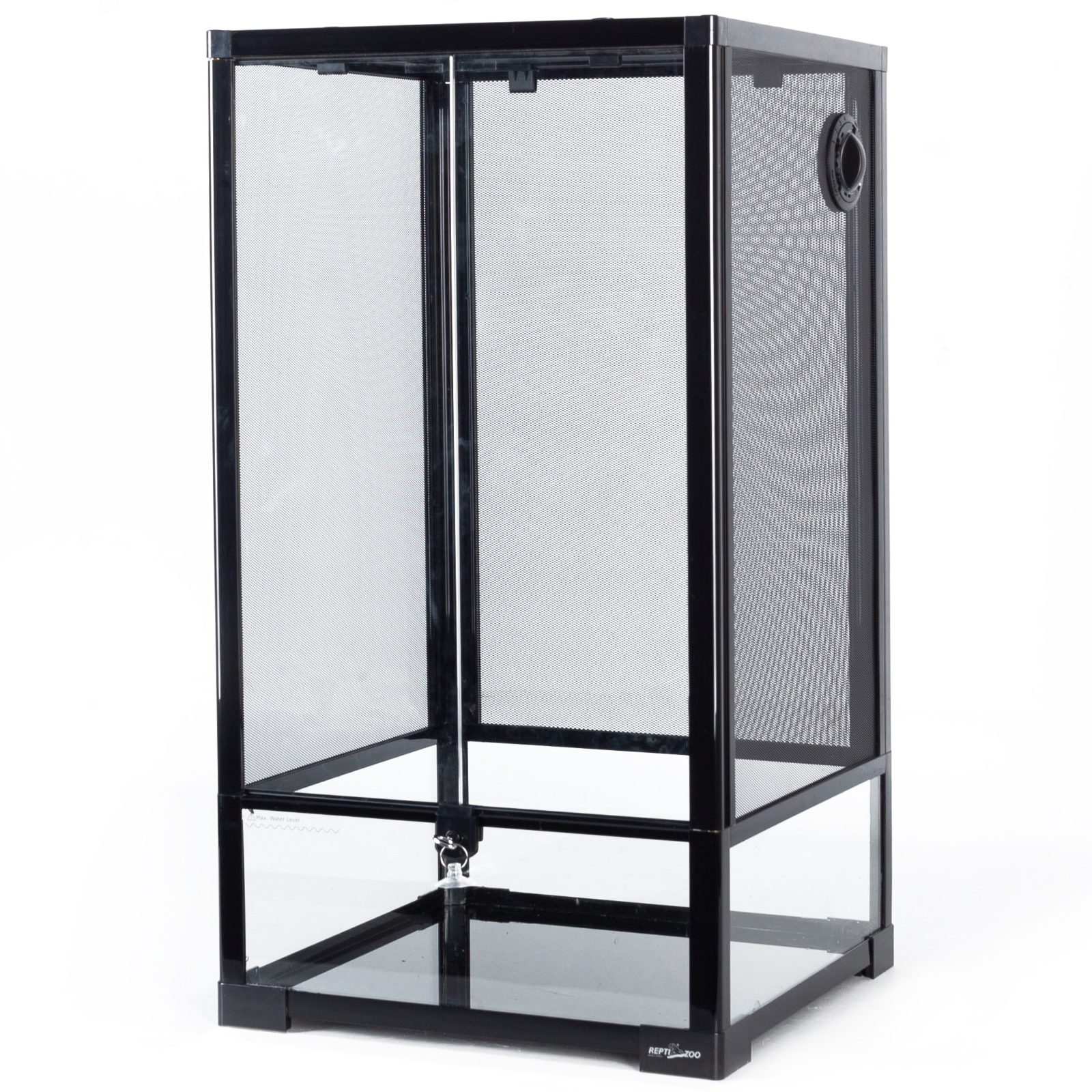 Ta wersja terrarium posiada trzy ściany w całości wykonane z siatki + szklane podwójne drzwi z zamkiem + szklana podstawa wodoodporna o wysokości 18cm.